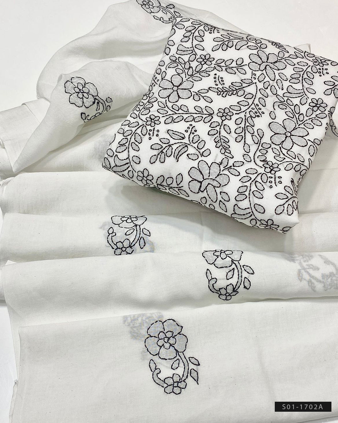 Handmade Shadow Work Embroidered Lawn ShirtEmbroidered Lawn DupattaPlain Lawn Trouser