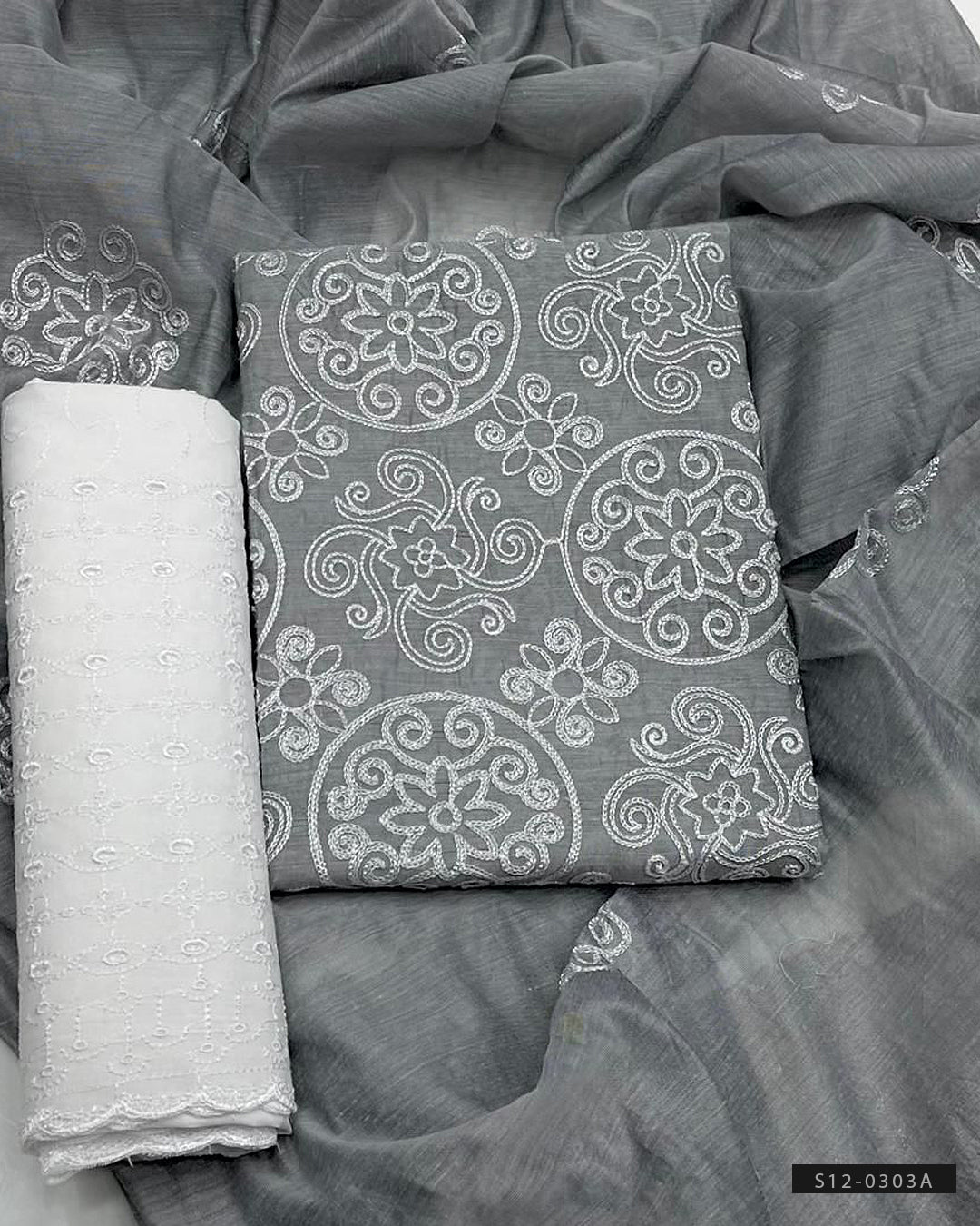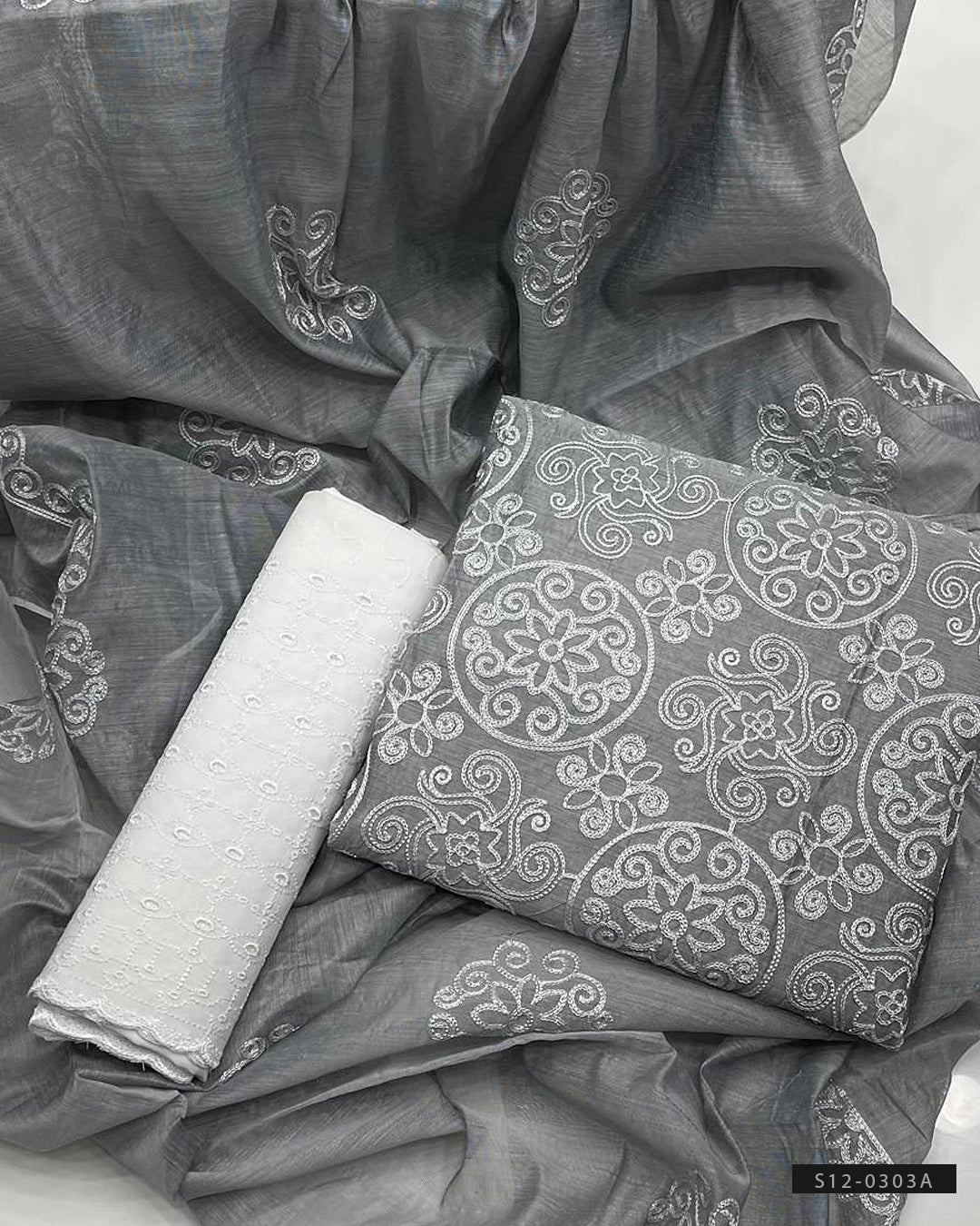 Jaal Embroidered Paper Cotton ShirtEmbroidered DupattaChickenkari Cotton Lawn Embroidered Trouser