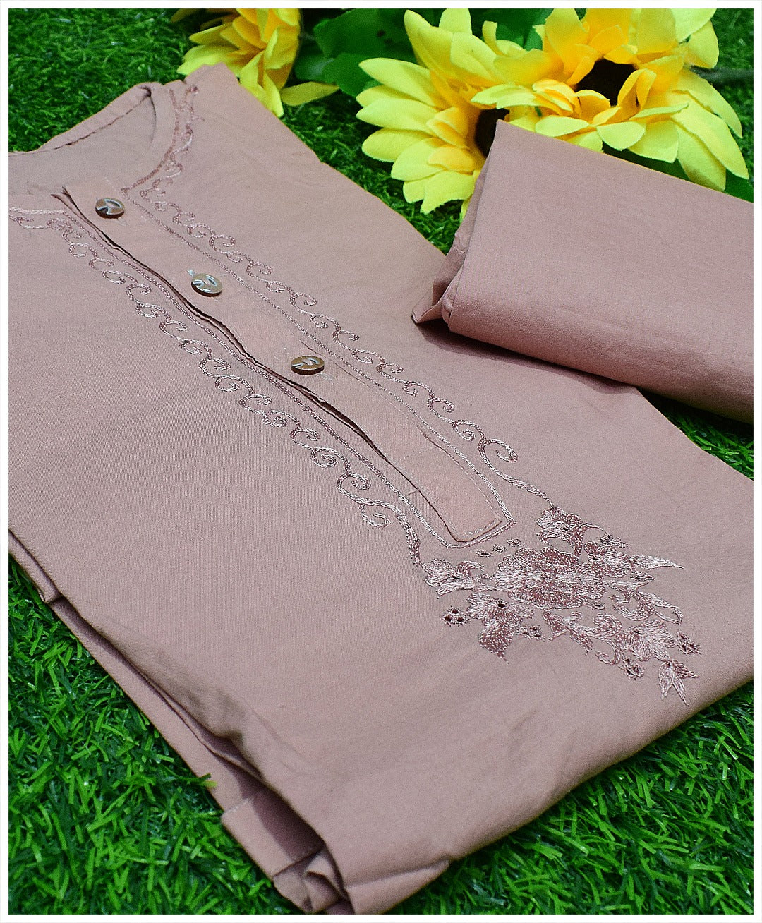 The exquisite hand embroidery adds a touch of tradition and elegance, making it perfect for any special occasion. The plain lawn shalwar complements the kurta beautifully, creating a coordinated and stylish look.