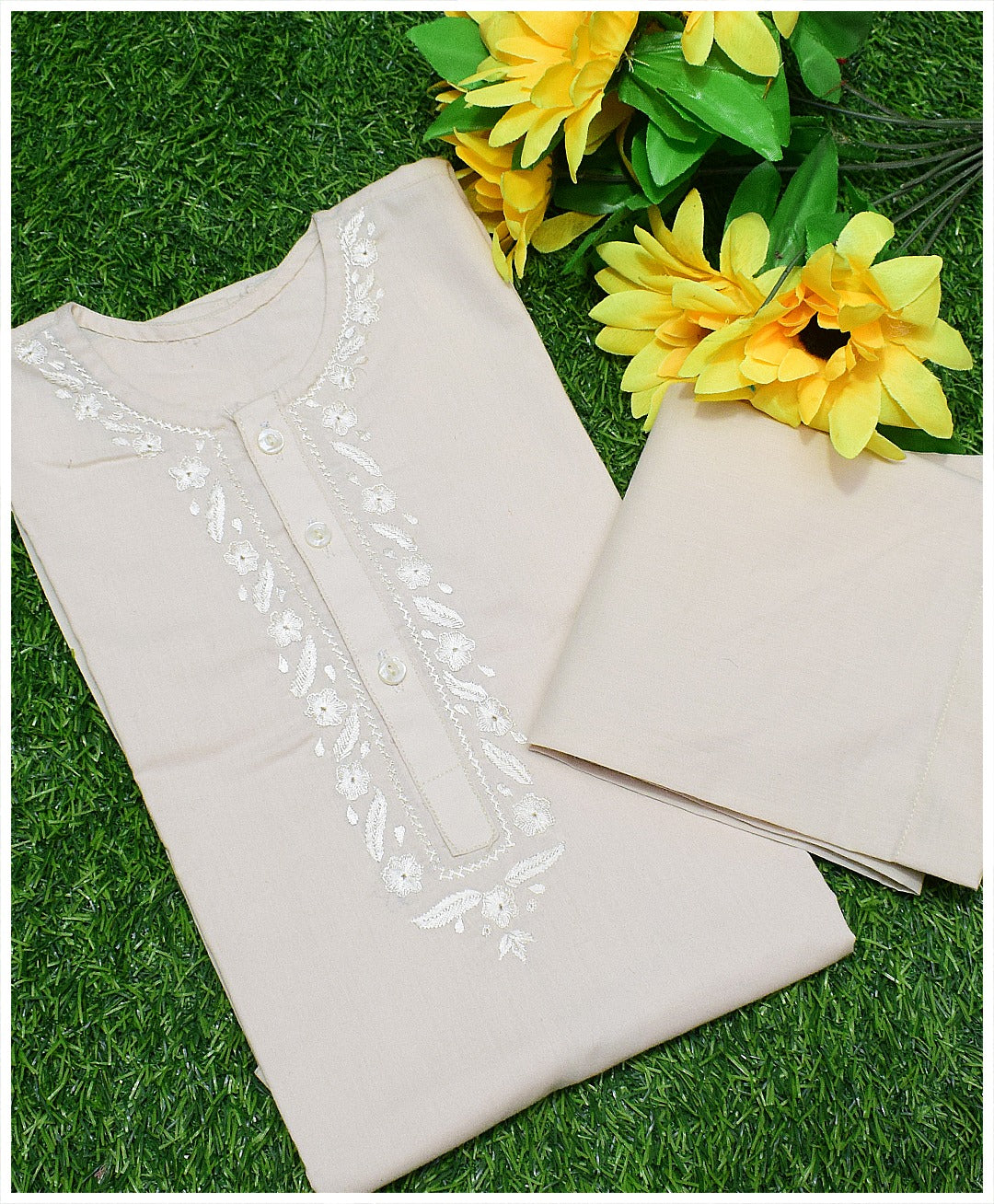 The exquisite hand embroidery adds a touch of tradition and elegance, making it perfect for any special occasion. The plain lawn shalwar complements the kurta beautifully, creating a coordinated and stylish look.