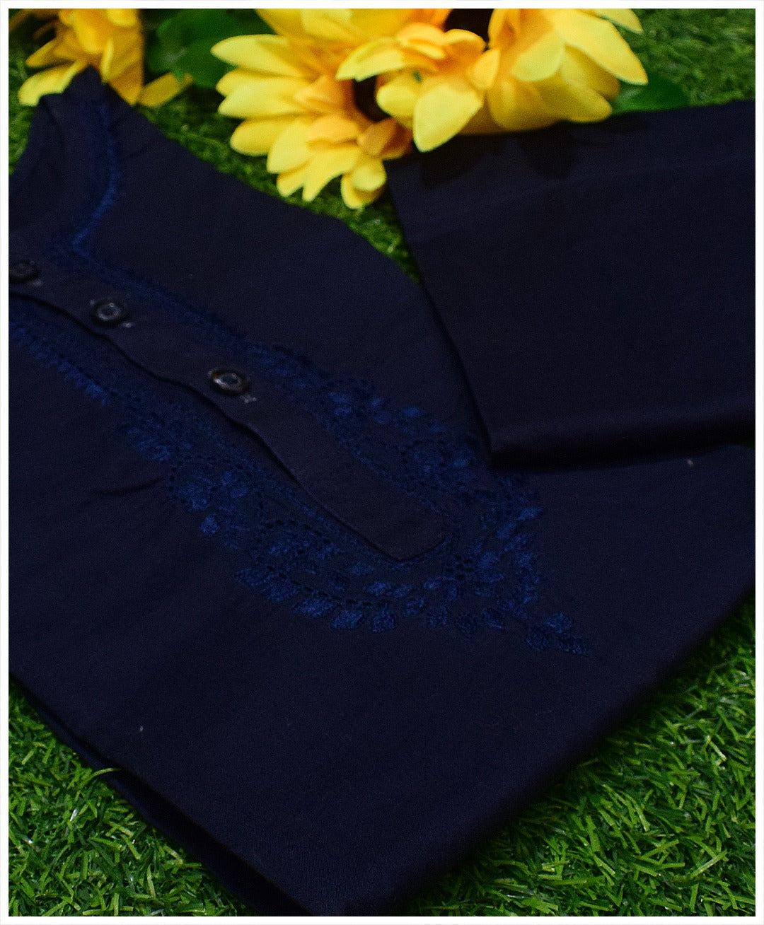 The exquisite hand embroidery adds a touch of tradition and elegance, making it perfect for any special occasion. The plain lawn shalwar complements the kurta beautifully, creating a coordinated and stylish look.