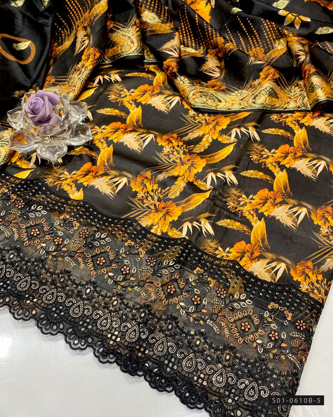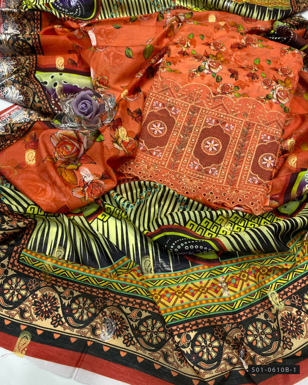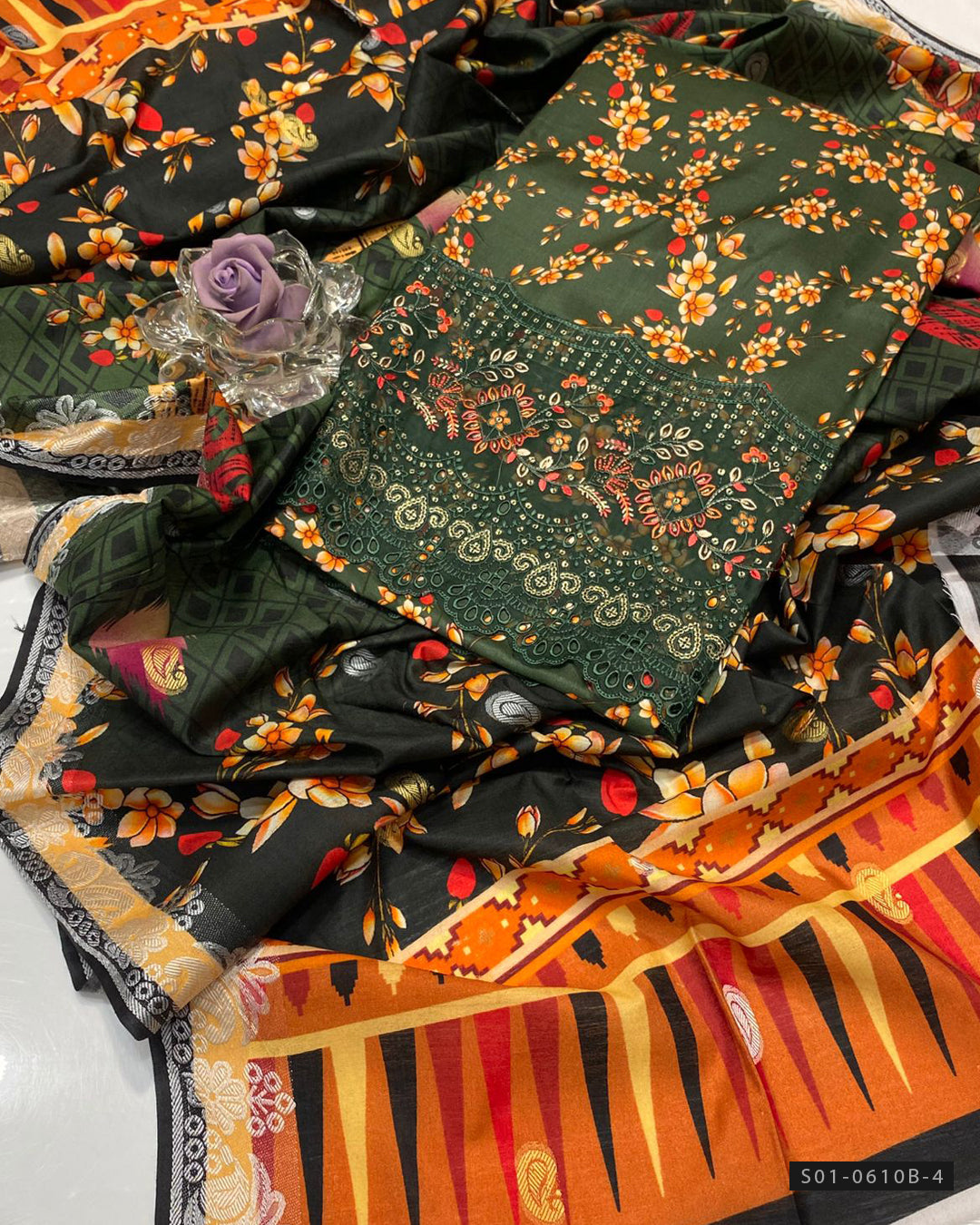 Fabric Detail:-Digital Printed Linen Shirt with Boring Work Daman + Digital Printed Linen Dupatta with Broshia Border + Digital Printed Linen Trouser