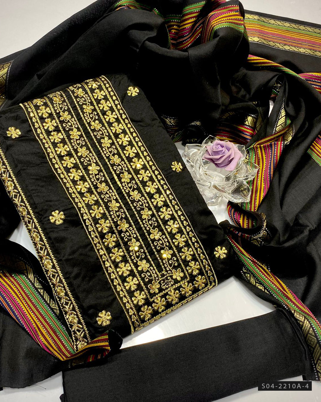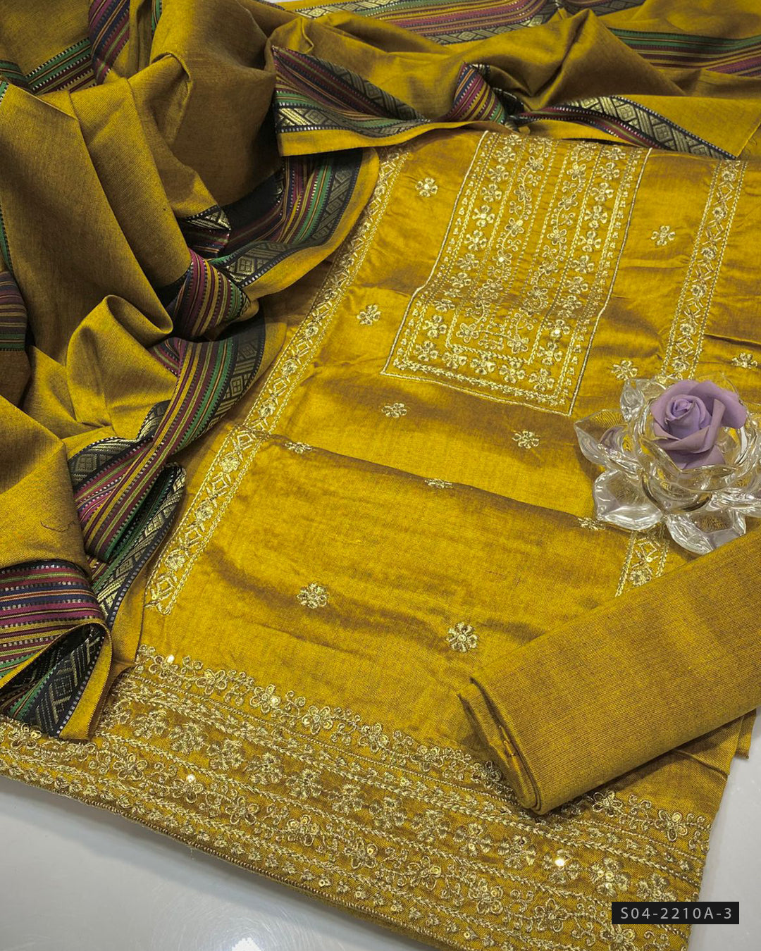 Fabric Detail:-Boutique Susi Shirt with Zaari Tilla Embroidery + Plain Trouser + Jacquard Banarsi Susi Shawl