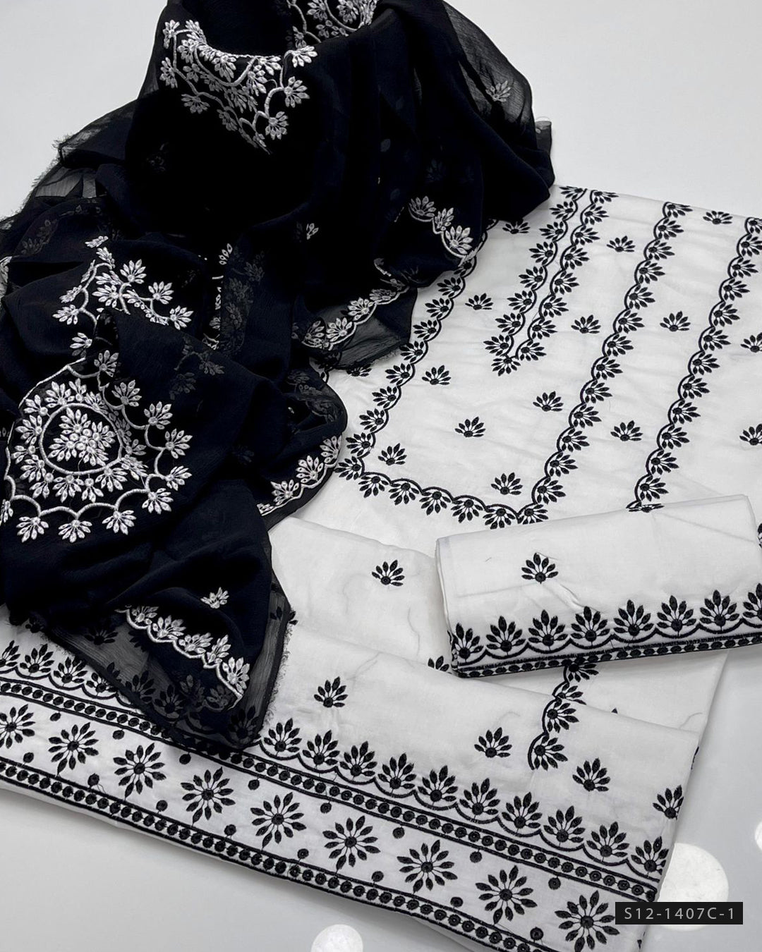 Fabric Detail:- Boring Work Embroidered Cotton Lawn ShirtChiffon Embroidered DupattaEmbroidered Lawn Trouser Elegant textures with soft comfort – perfect for a refined everyday or semi-formal look!...