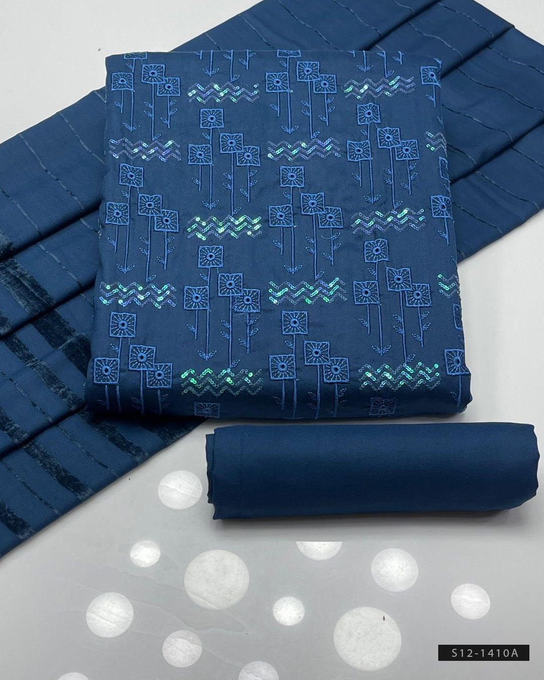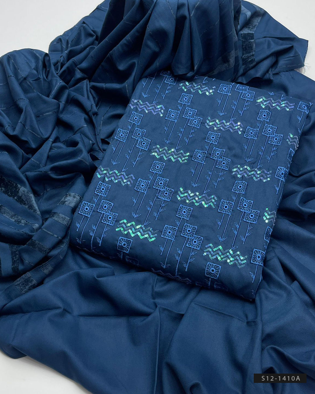 Fabric Detail:-Embroidered Boring Shirt with Sequence Work + Plain Trouser + Dhanak Shawl with Velvet Work detailing