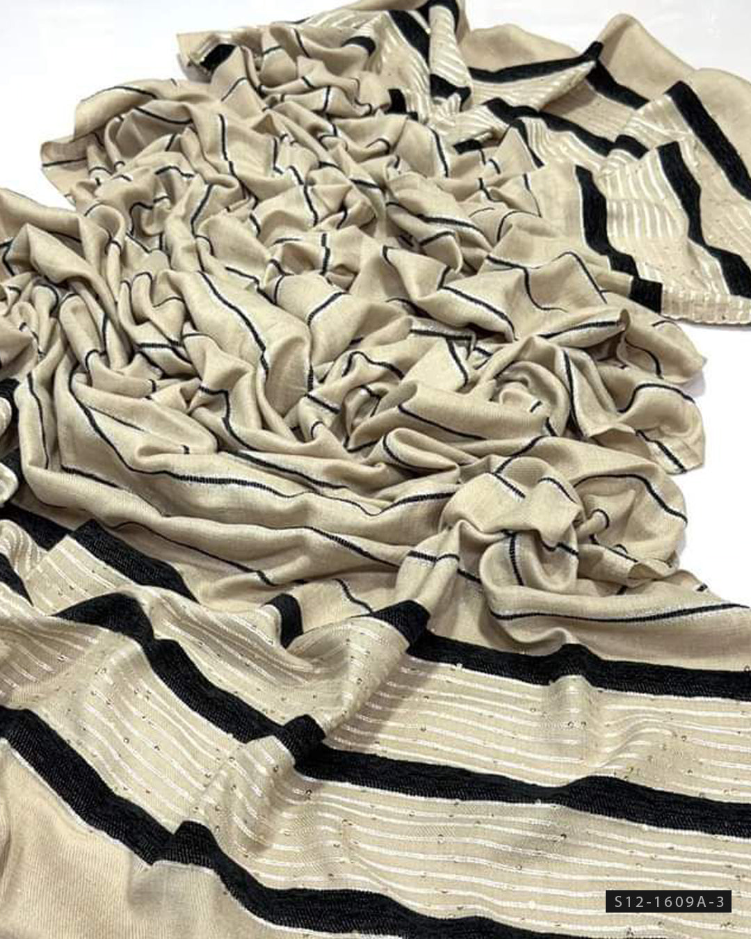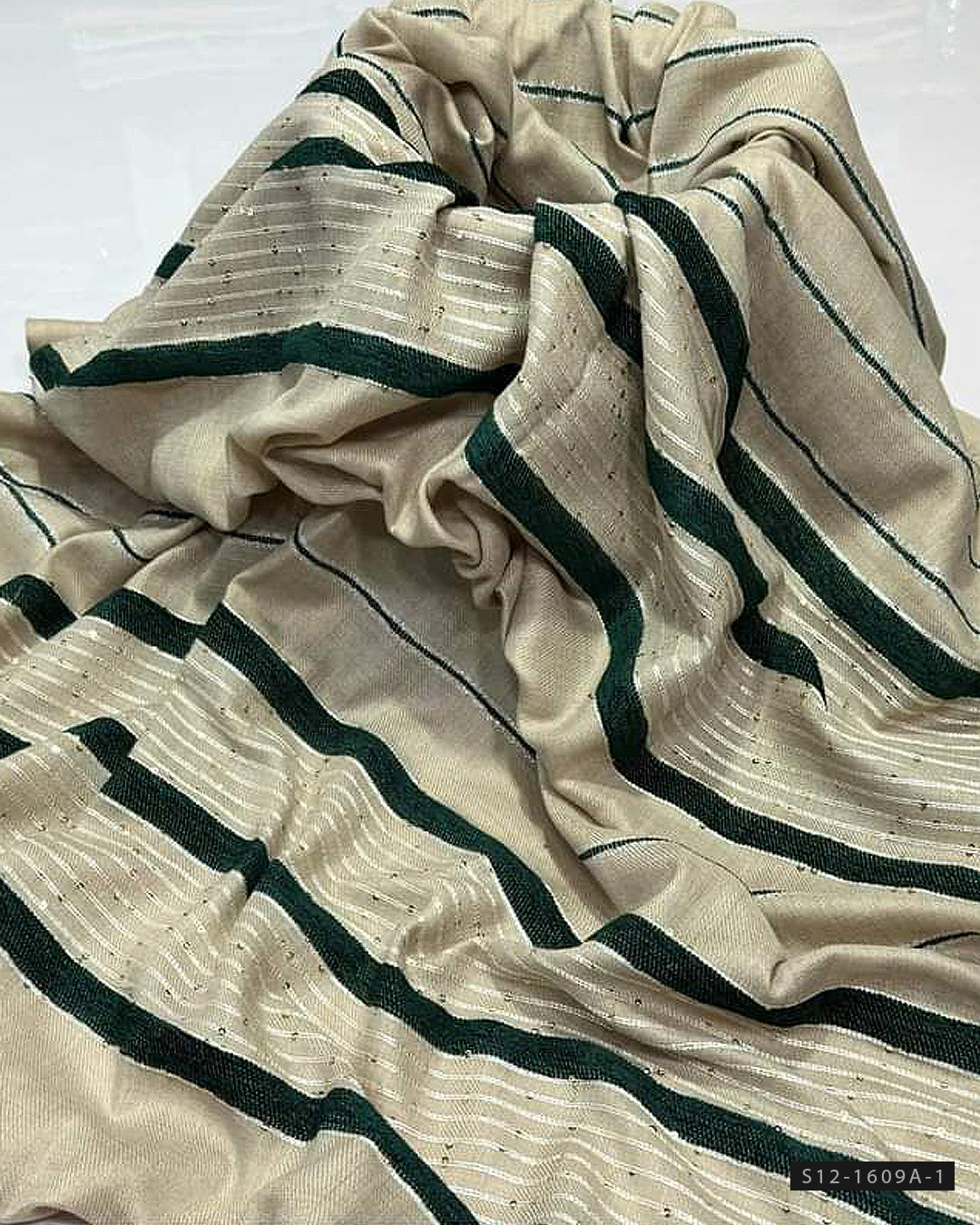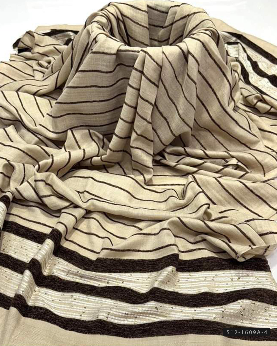 Premium Pashmina Wool Jacquard Shawl + Velvet Detailing with Sequins Work