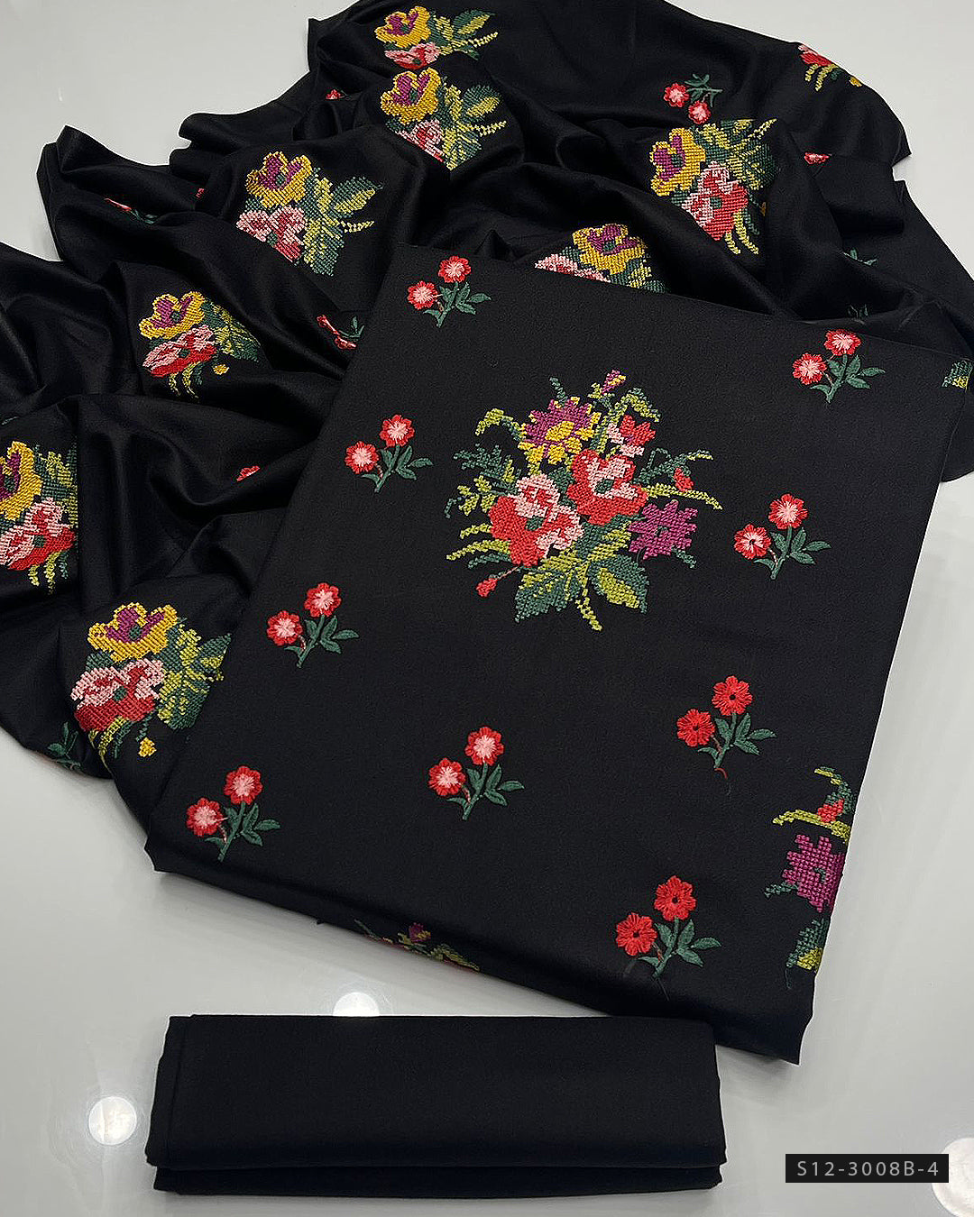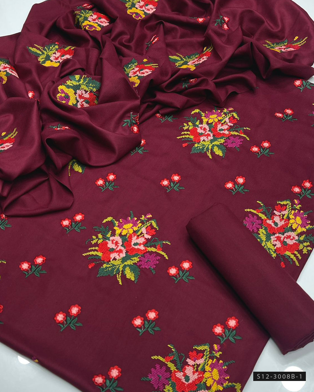 Cross Stitch Embroidered Dhanak ShirtDhanak Embroidered DupattaPlain Dhanak Trouser