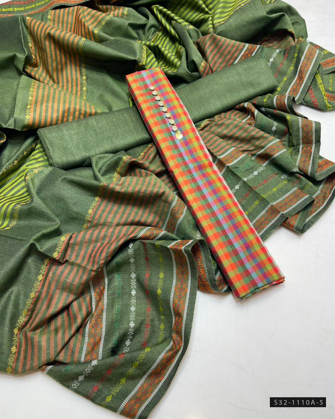 Fabric Detail:-Multani Khaddar Susi Acrylic Shirt + Khadi Acrylic Trouser + Jacquard Border Khadi Susi Shawl