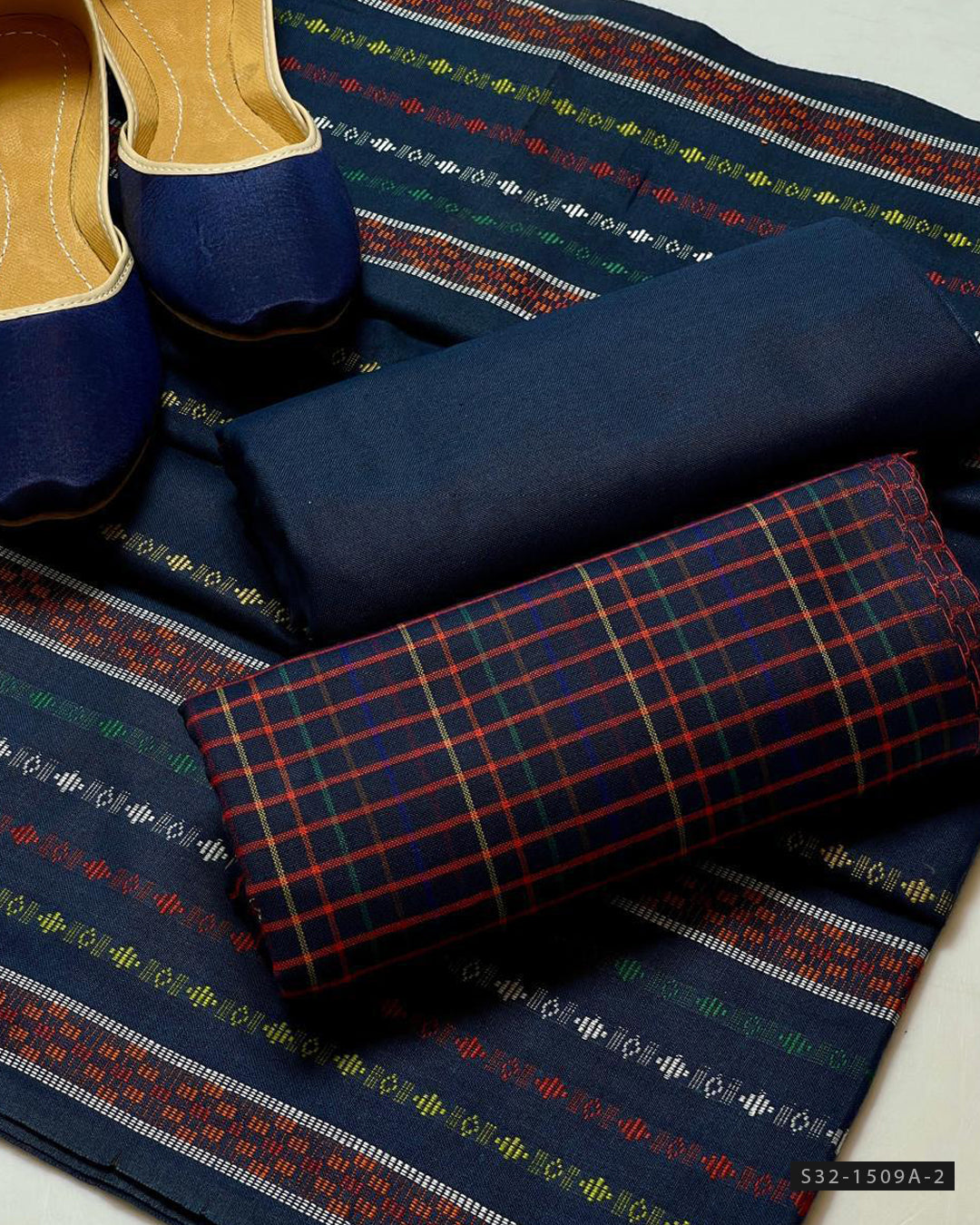 Fabric Detail:-Multani Khaddi Acrylic Susi Shirt + Jacquard Khaddi Susi Dupatta + Khaddi Acrylic Susi Trouser + Free Matching Khussa