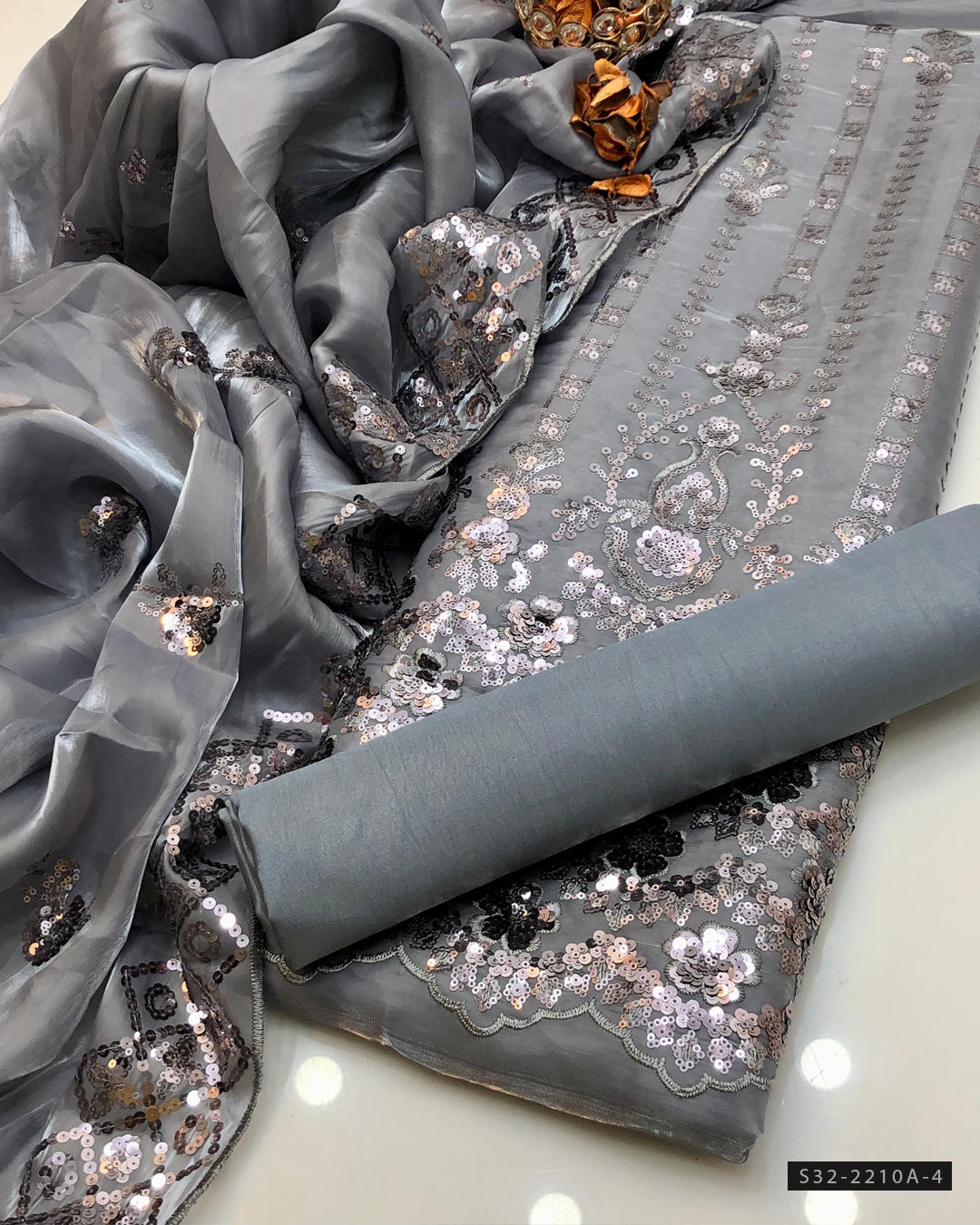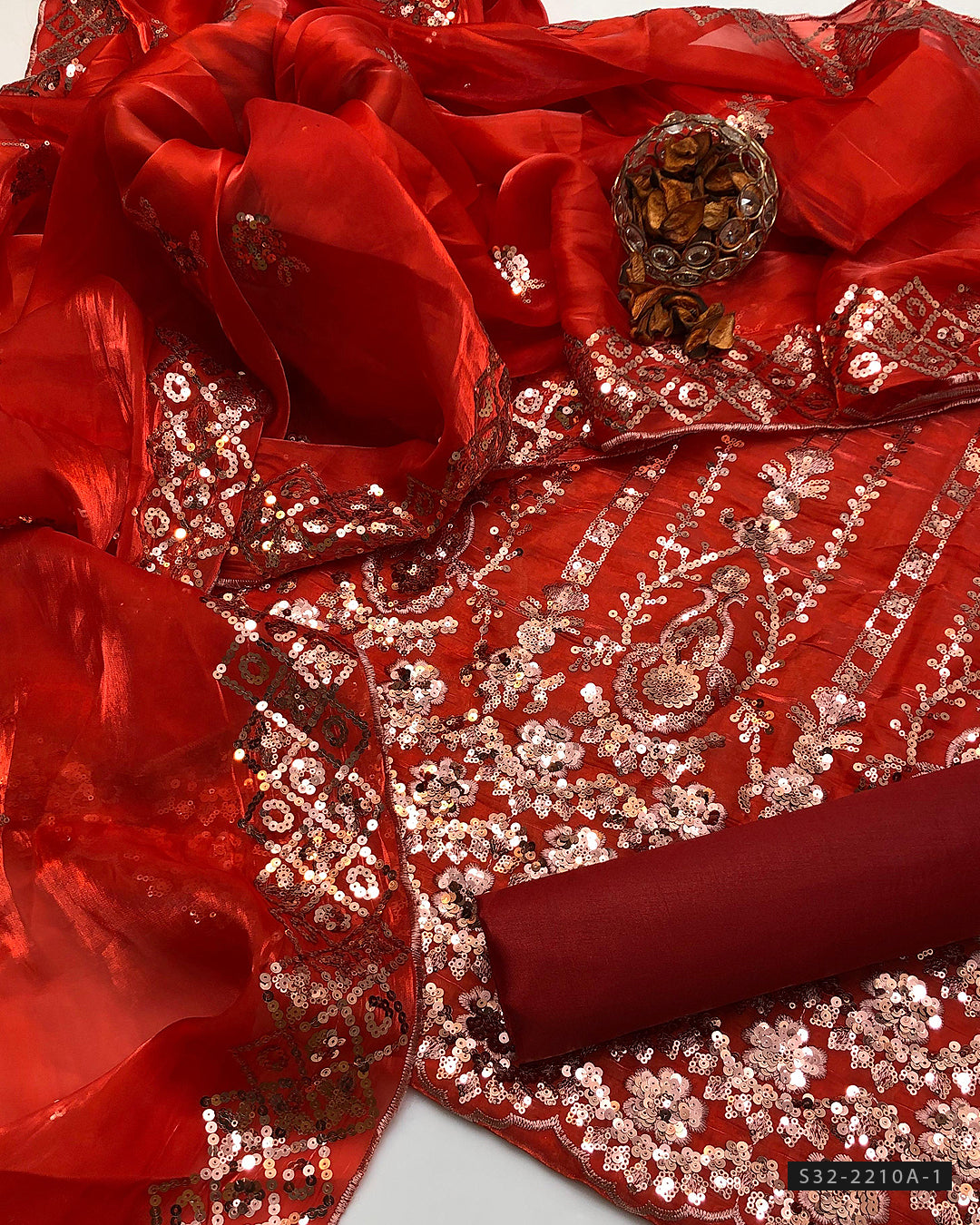 Fabric Detail:-Shesha Silk Embroidered Front & Back Shirt + Shesha Silk Embroidered Dupatta + Plain Katan Silk Trouser
