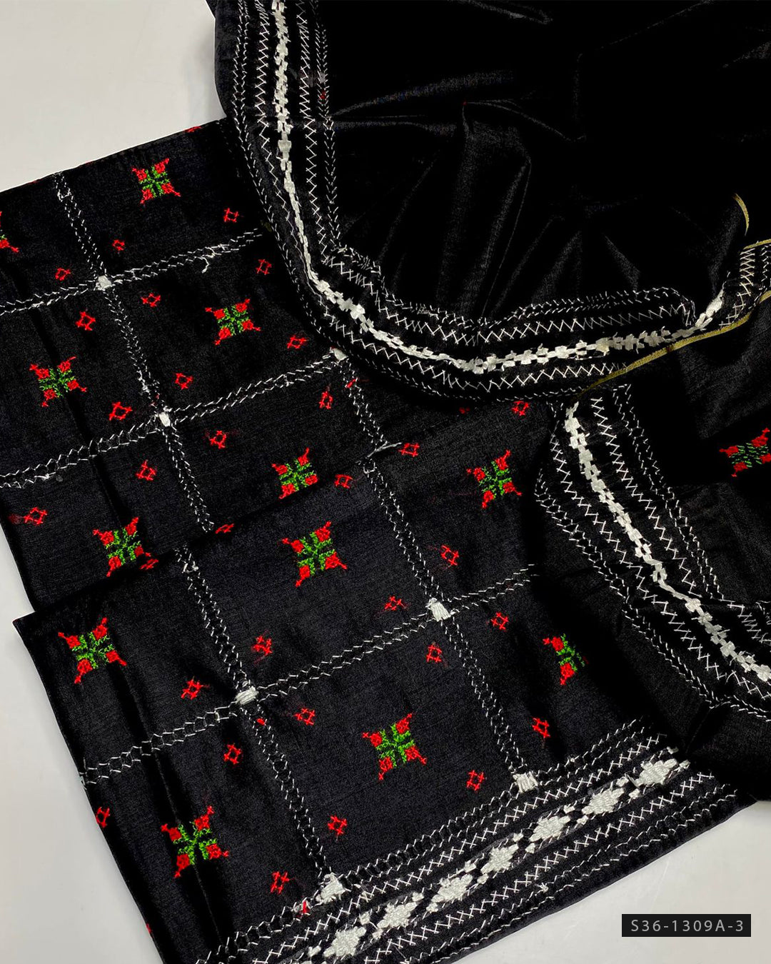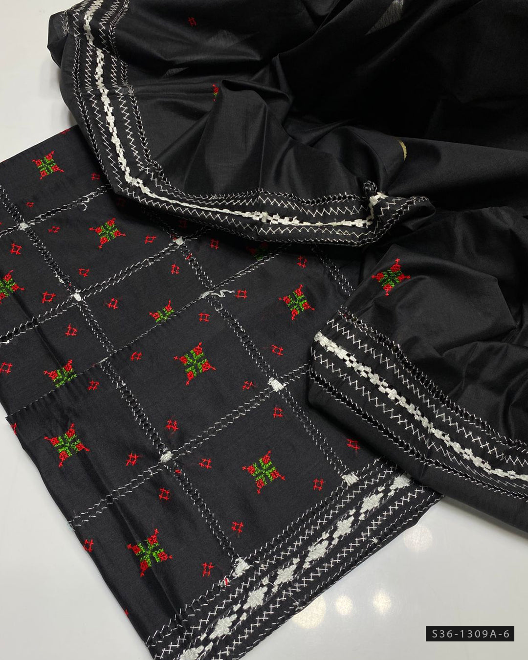 Fabric Detail:-Tarkashi Cross Stitch Embroidered Paper Cotton Shirt + Paper Cotton Embroidered Dupatta