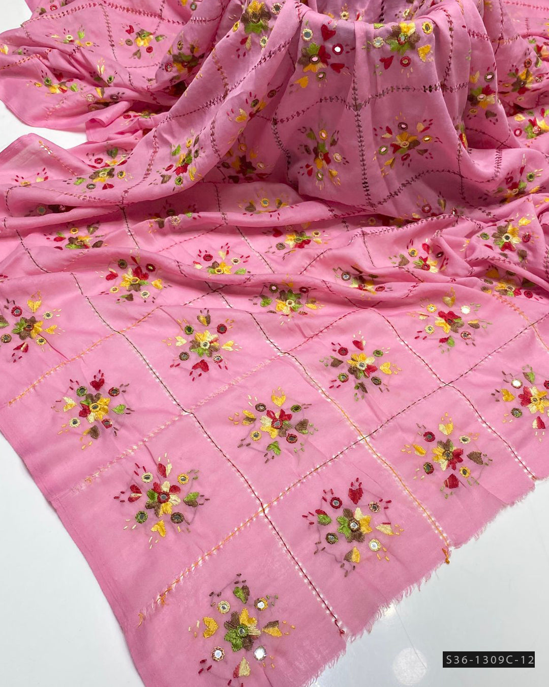 Fabric Detail:-Mirror Tarkashi Embroidered Swiss Lawn Chaddar + Length: 2.5 Meter