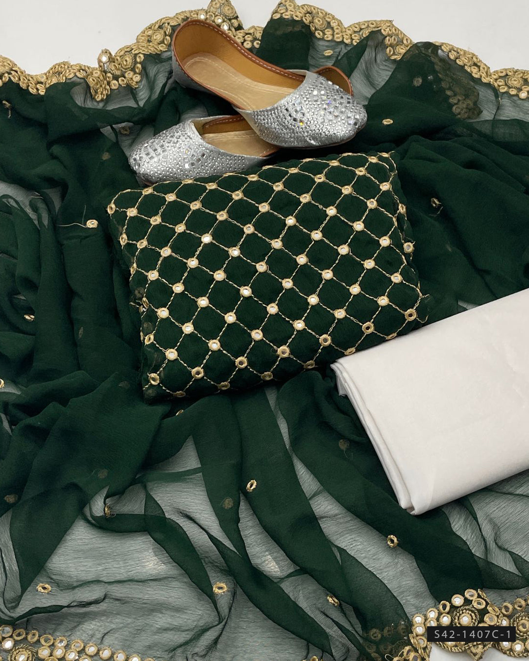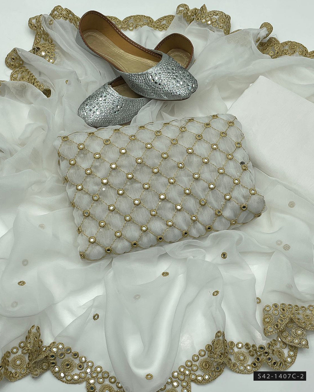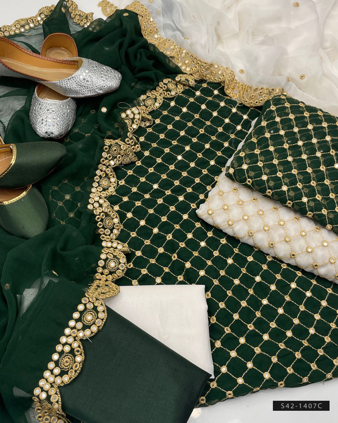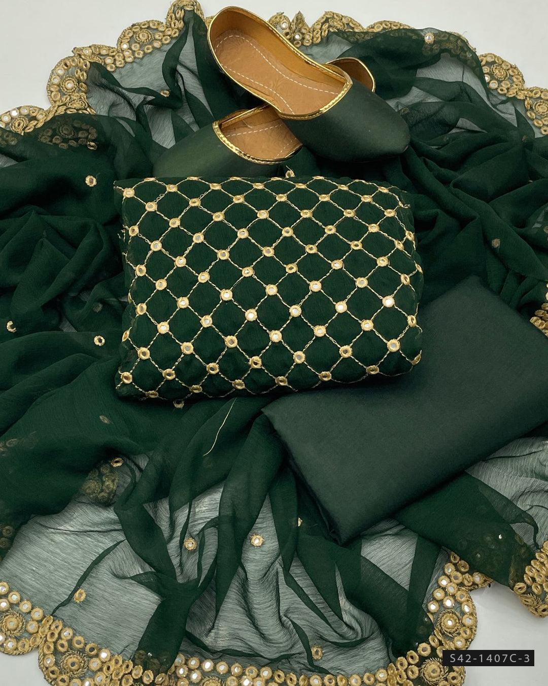 π 14.14 Independence Day Sale πFabric Detail:- Soft Chiffon Shirt with Jaal WorkEmbroidered Dupatta with 2 Side Cut Work BorderPlain Katan Silk TrouserFree Khussa Gift Azadi...