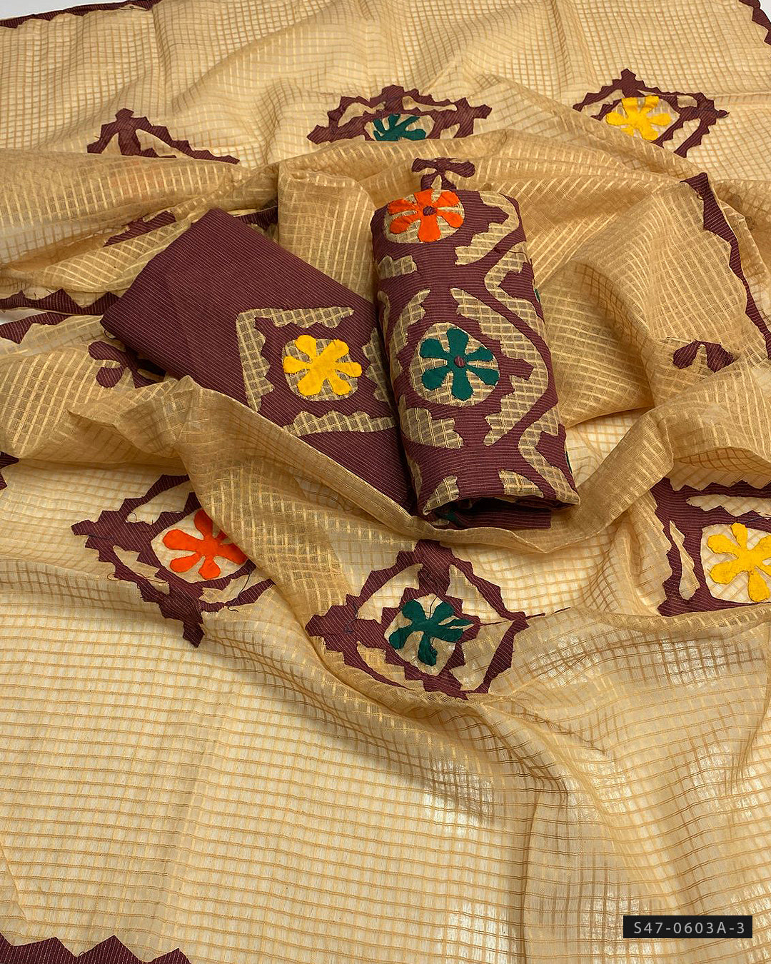 Khadi Cotton Applique Work Shirt Khadi Cotton Applique Work TrouserCotton Net Applique Work Dupatta