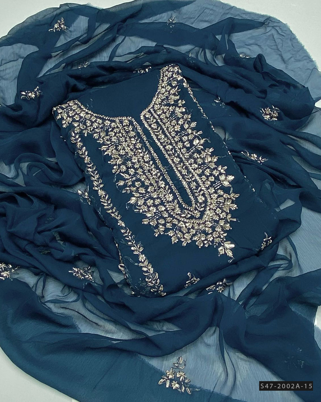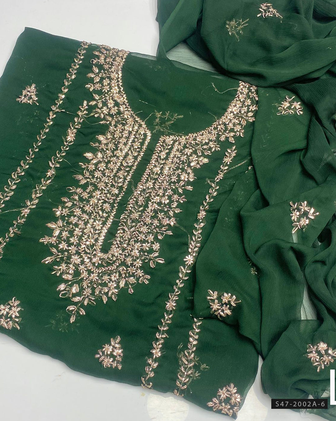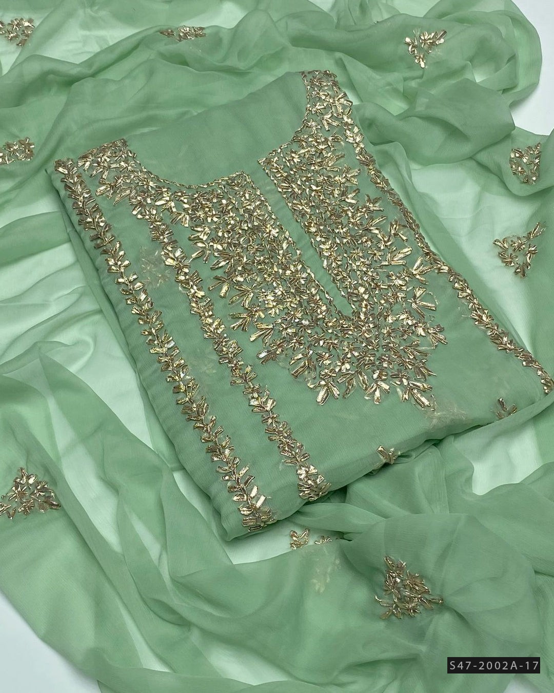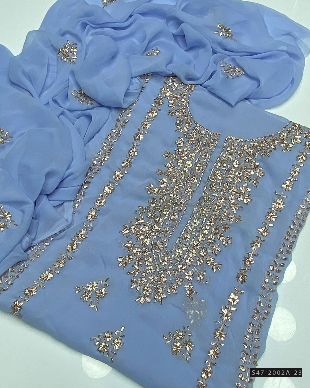 Handmade Soft Bamber Chiffon Gotta Work Shirt Embroidered Chiffon Dupatta
