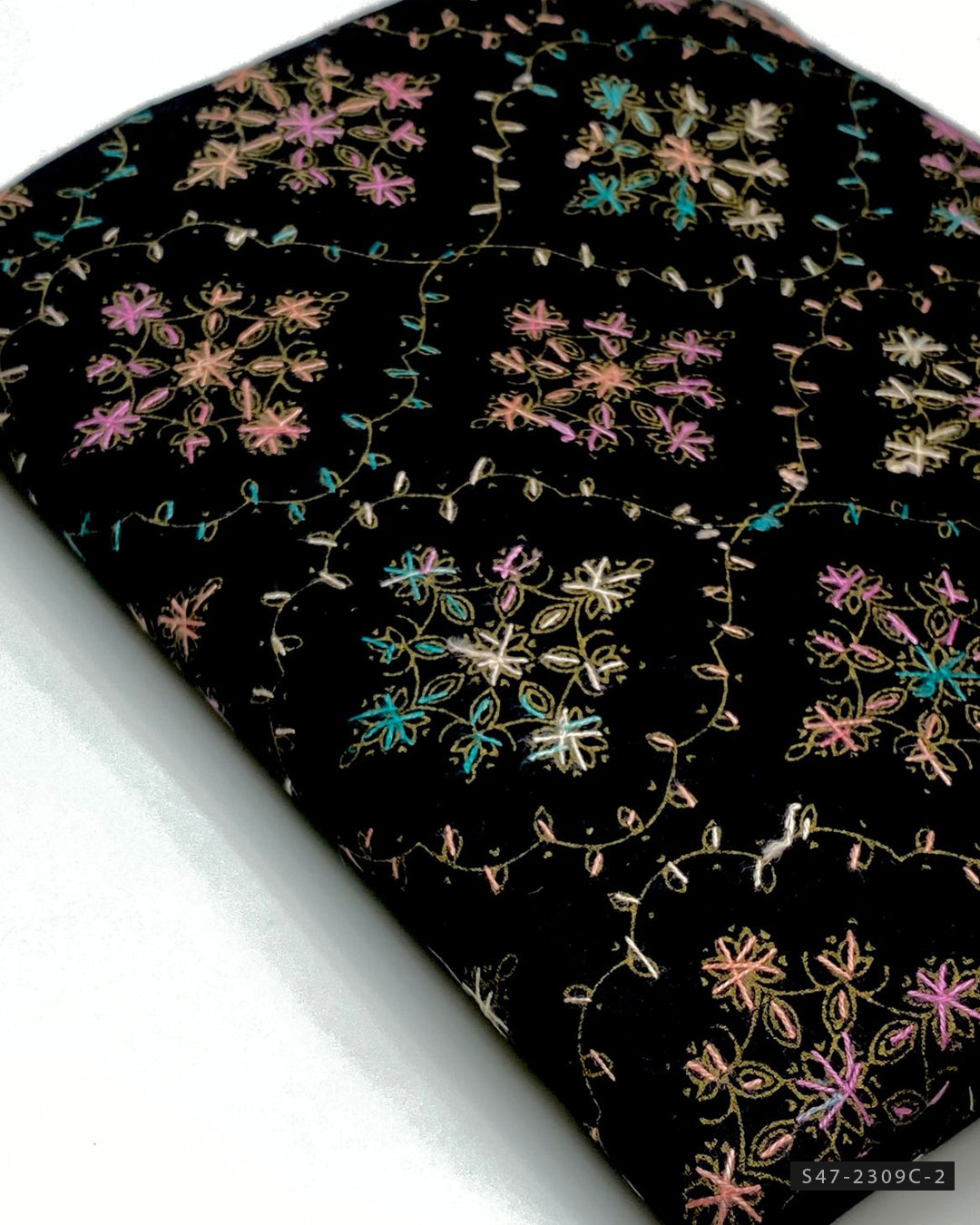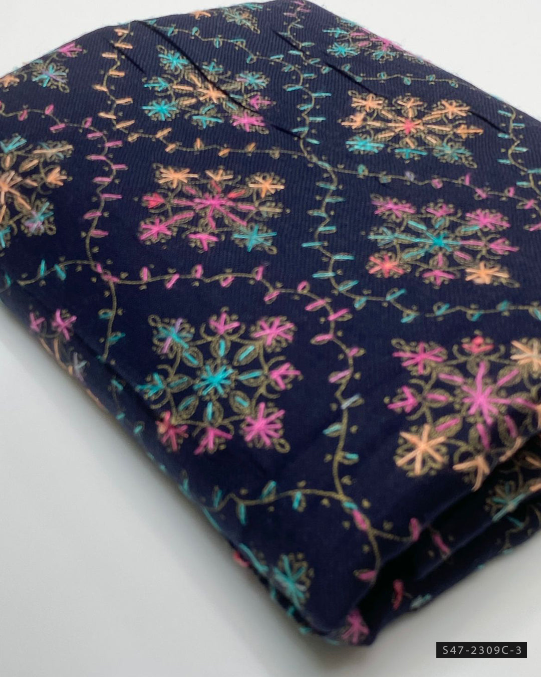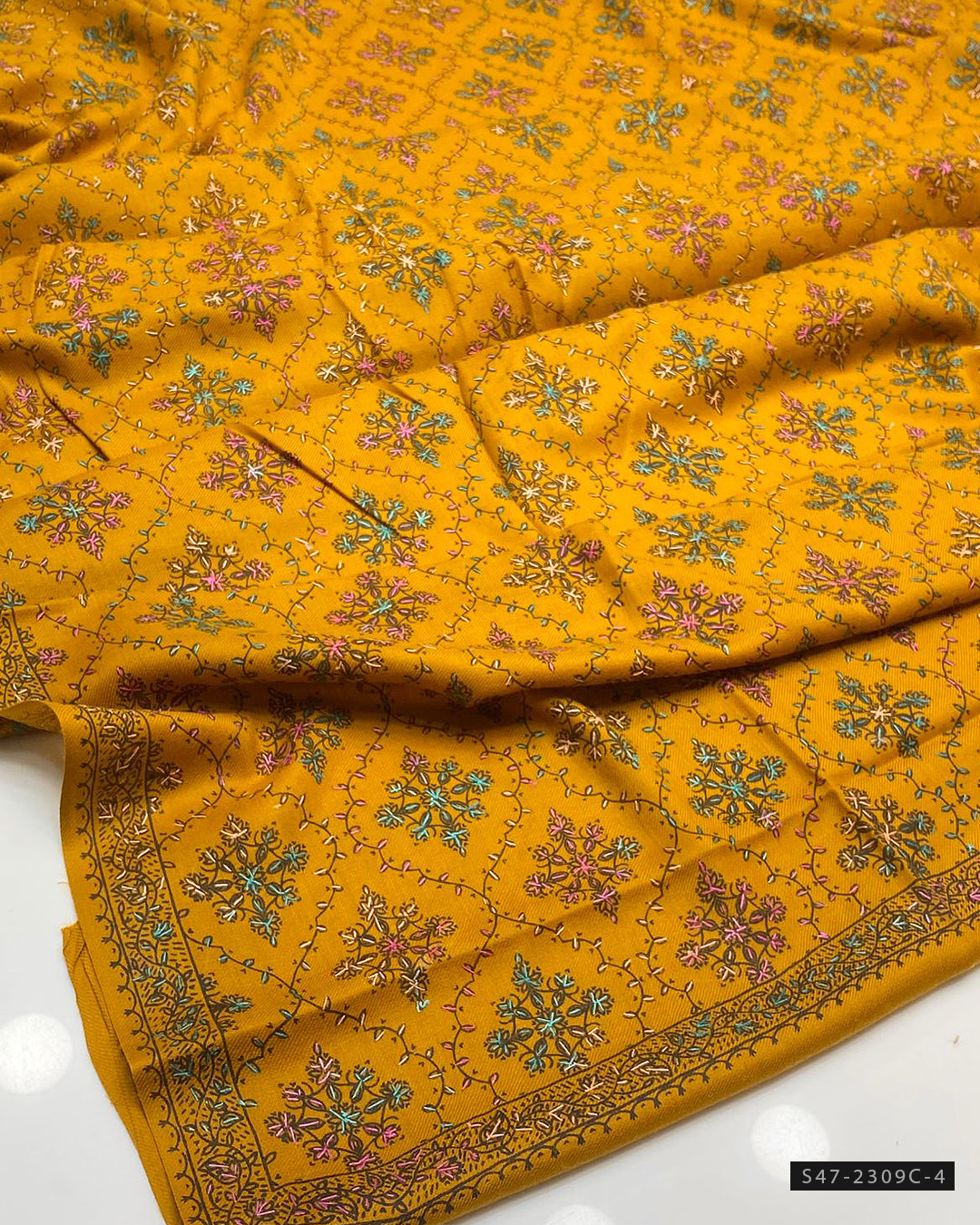 Fabric Detail:-Multi Embroidered Pashmina Wool Shawl + Length: 2.5 Yards