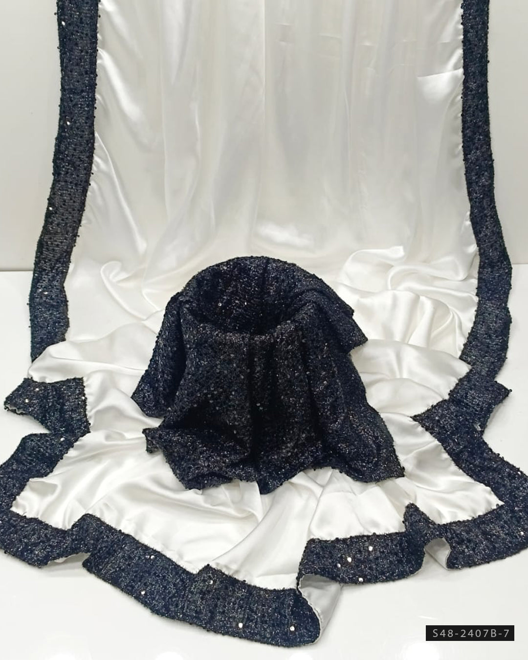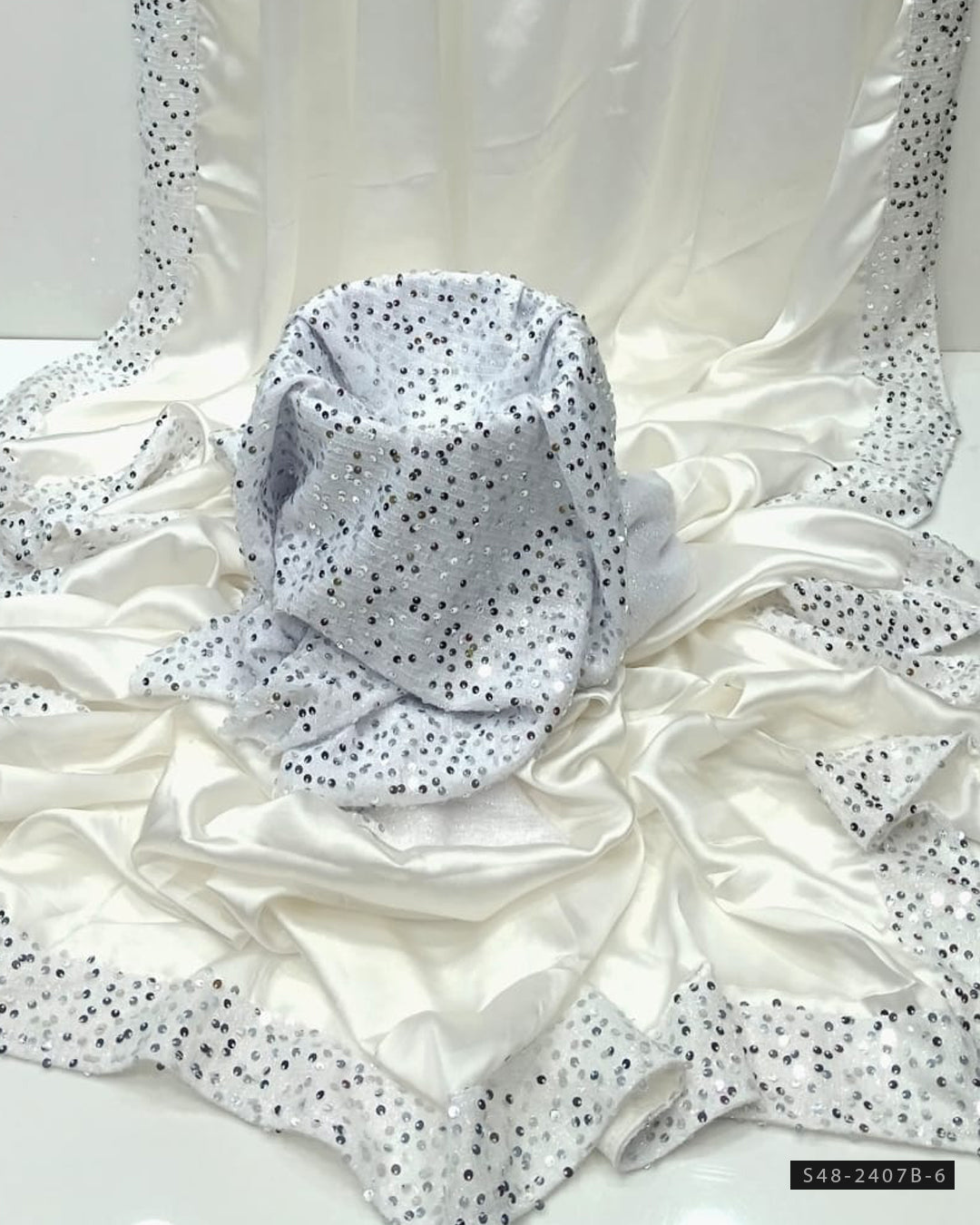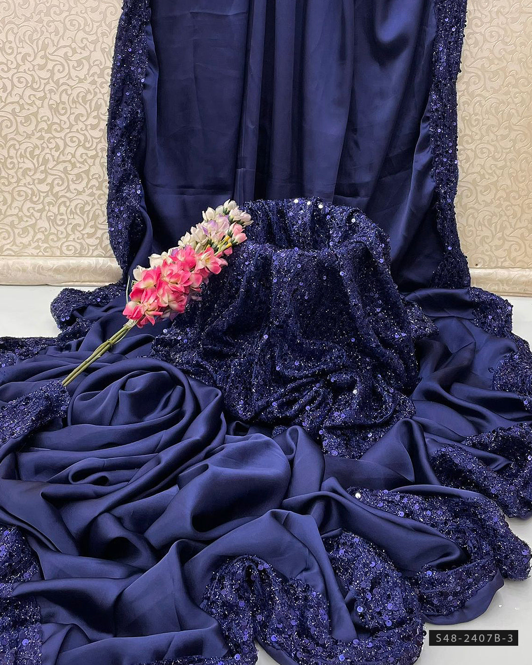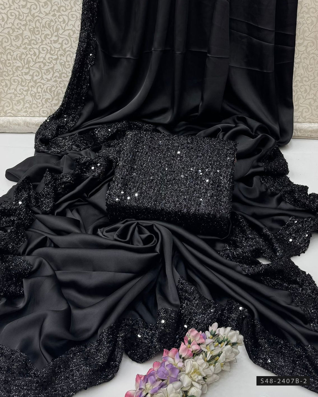 Fabric Detail:- Shamoze Silk Saree with 4-Sided Sequin Border PallaSequin Border BottomSequin Work Blouse & Sleeves Fabric Included ๐ Length: 7 Yards | Width: 55 Inches๐...