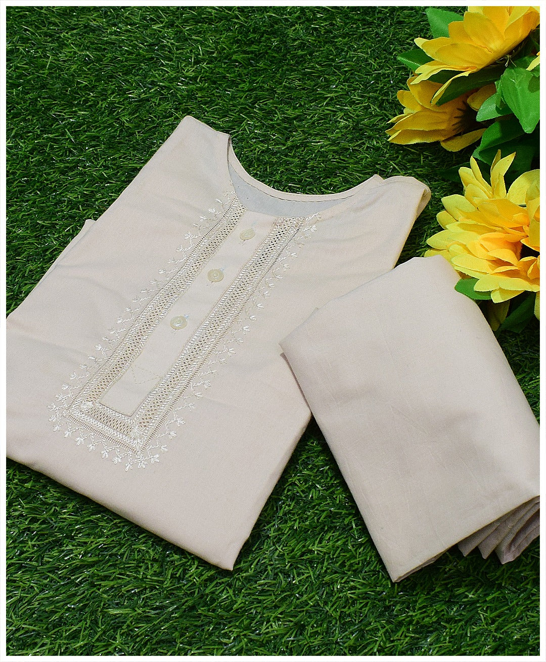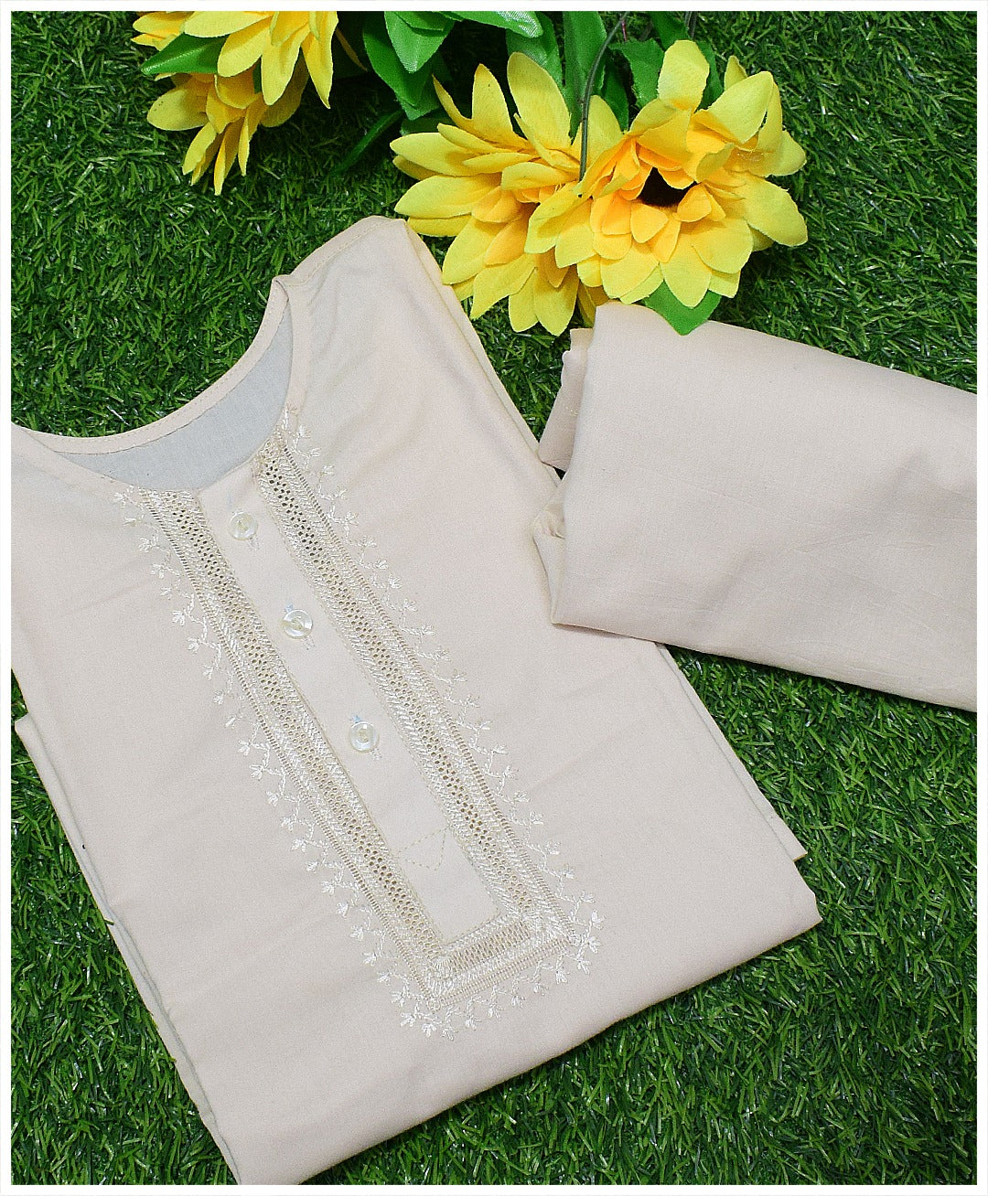 Dress Your Child in Tradition: Handcrafted Cream Kurta Shalwar