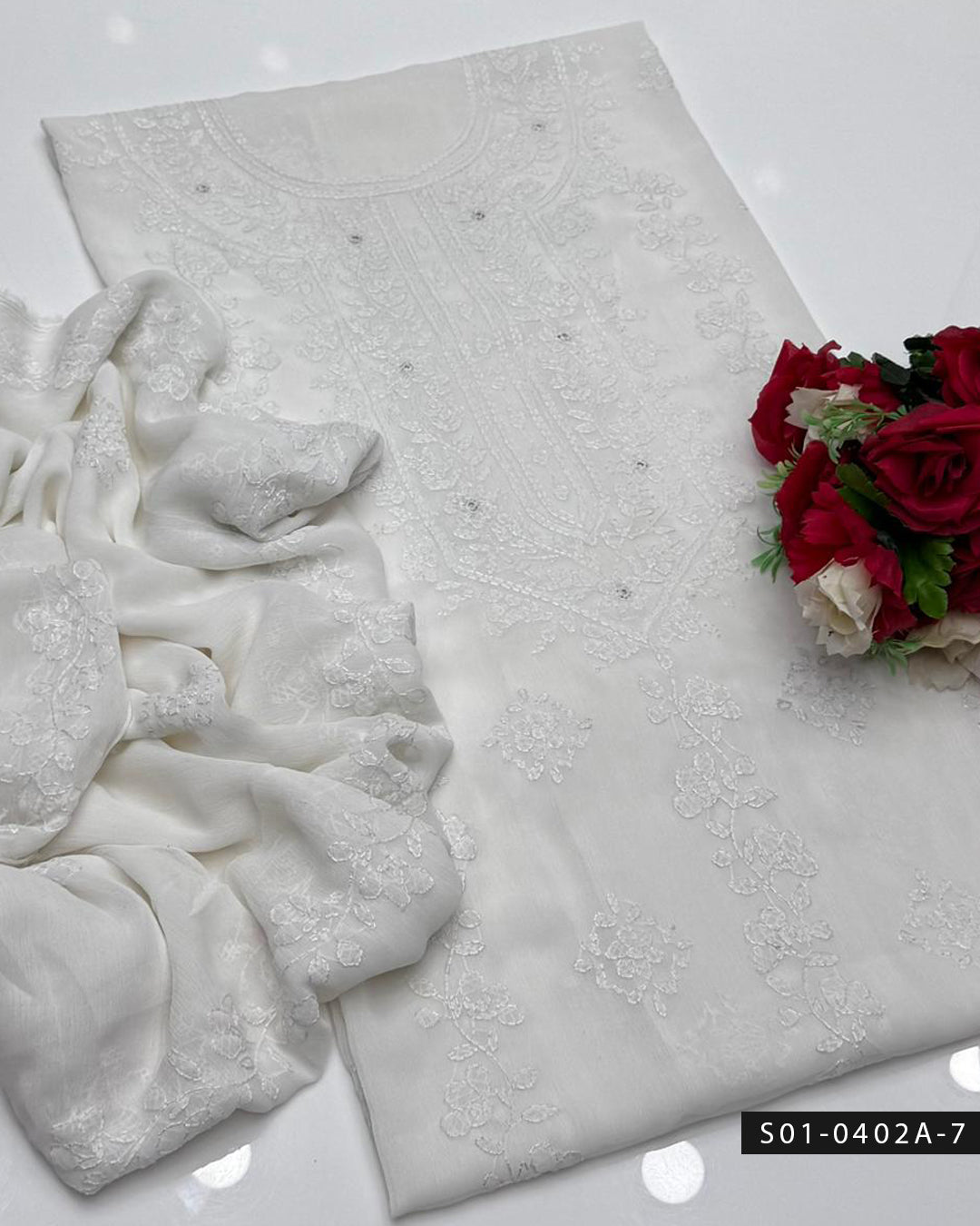 Chiffon shirt with beautiful handmade shadow sheesha embroidery + Chiffon dupatta with elegant 4-sided embroidery