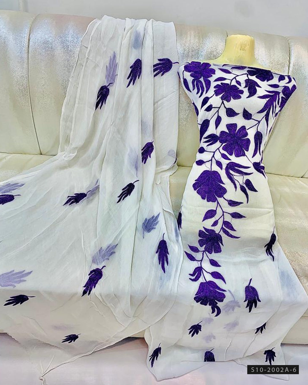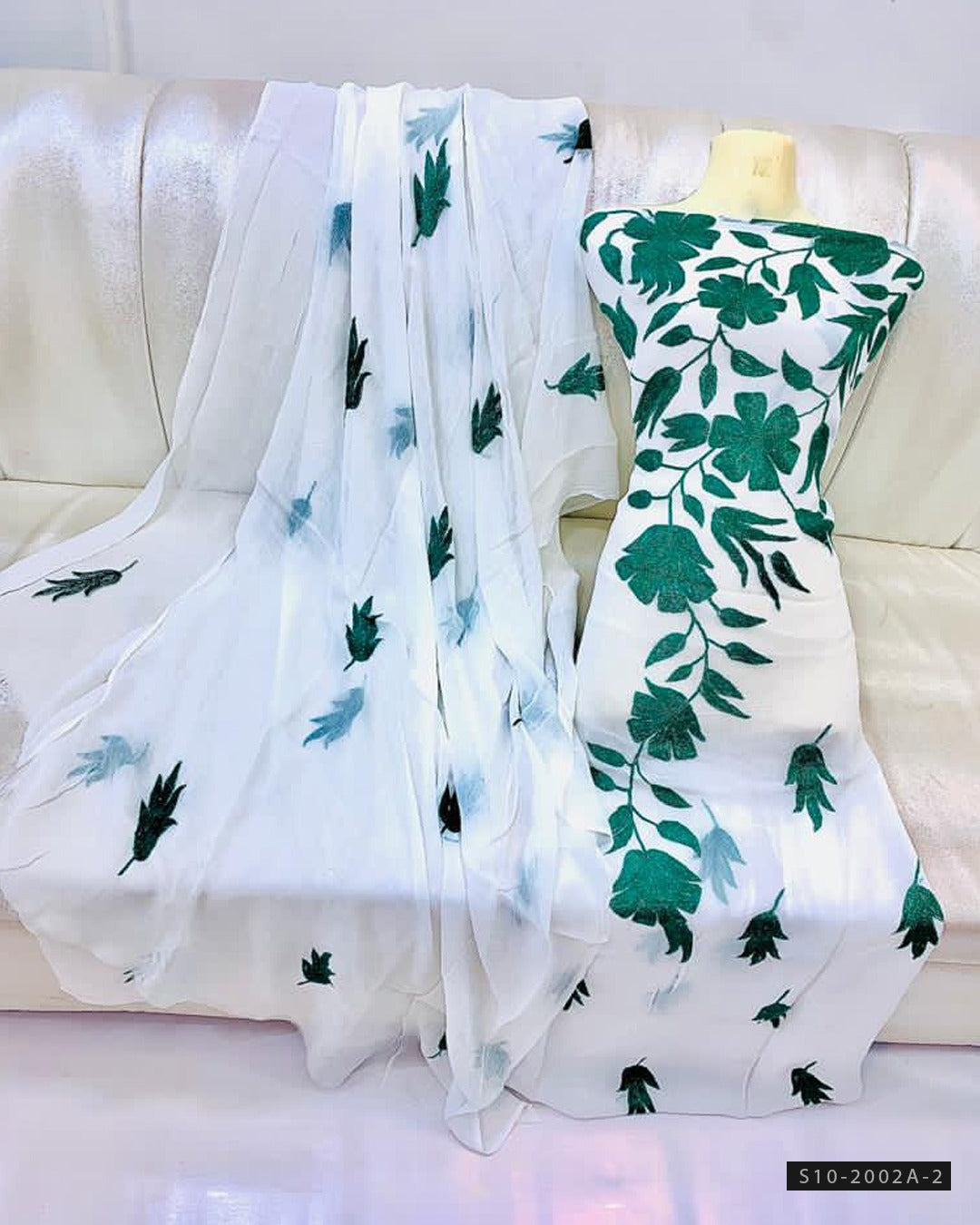 Handmade Soft Chiffon Aar Patta Embroidery ShirtEmbroidered Soft Chiffon Dupatta