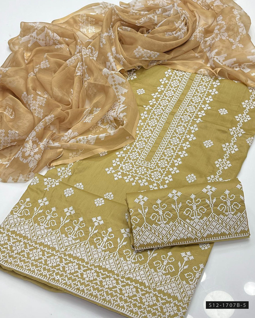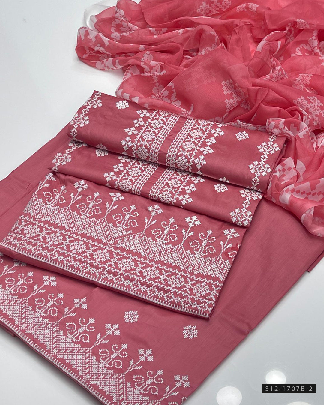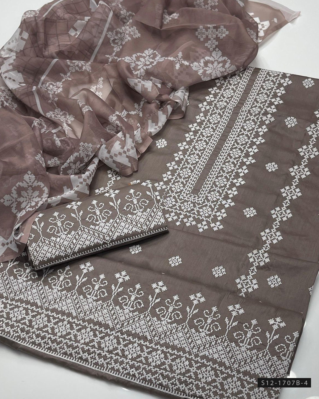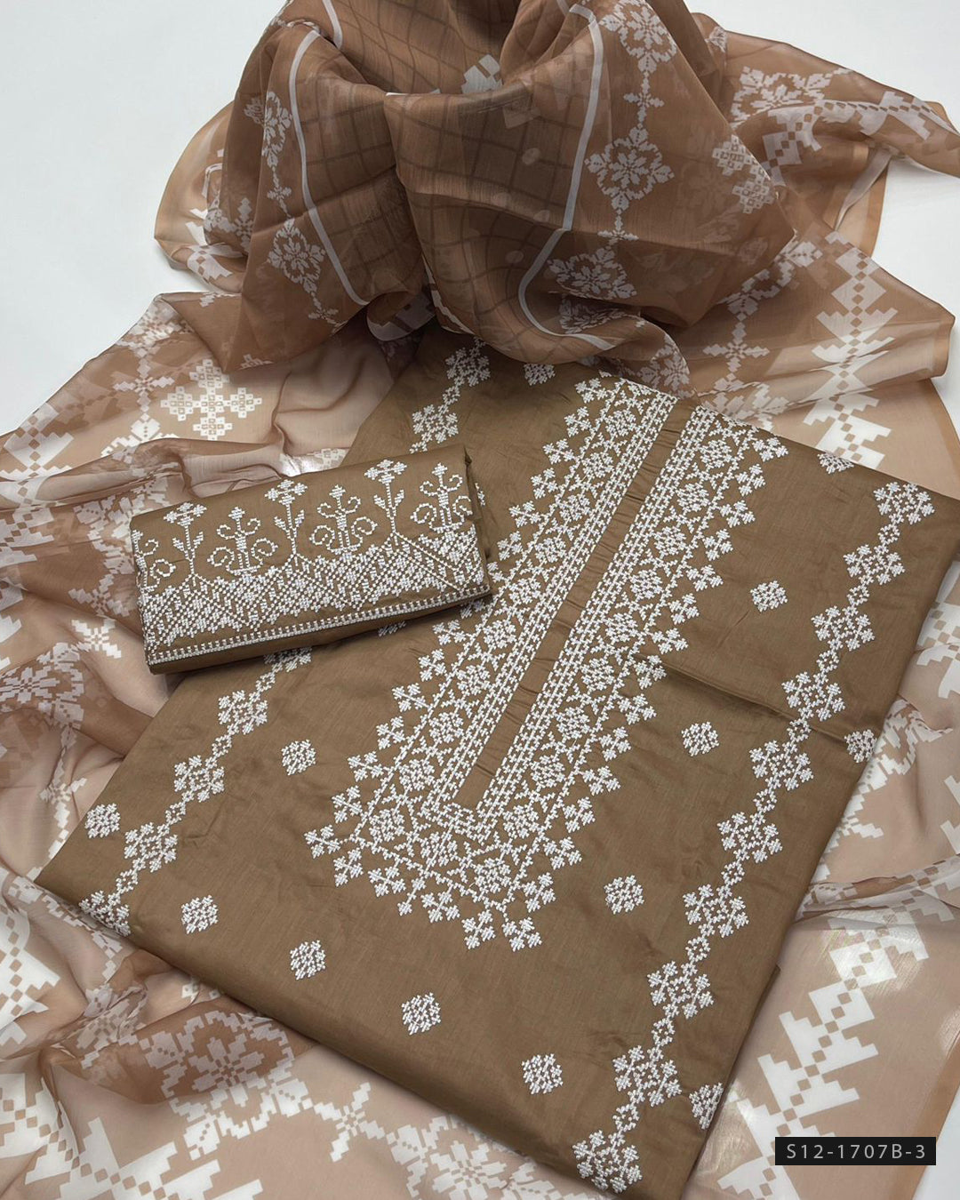 Fabric Detail:- Embroidered Lawn Shirt with Galla & Daman DetailingPrinted Chiffon DupattaEmbroidered Lawn Trouser A graceful combo of fine embroidery and bold prints – perfect for...