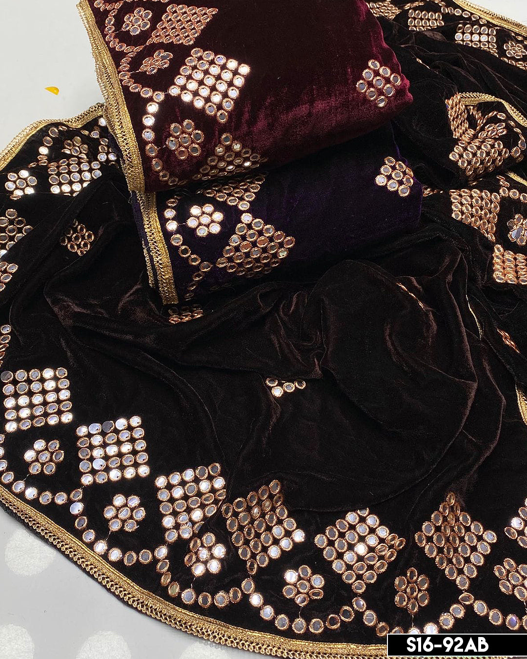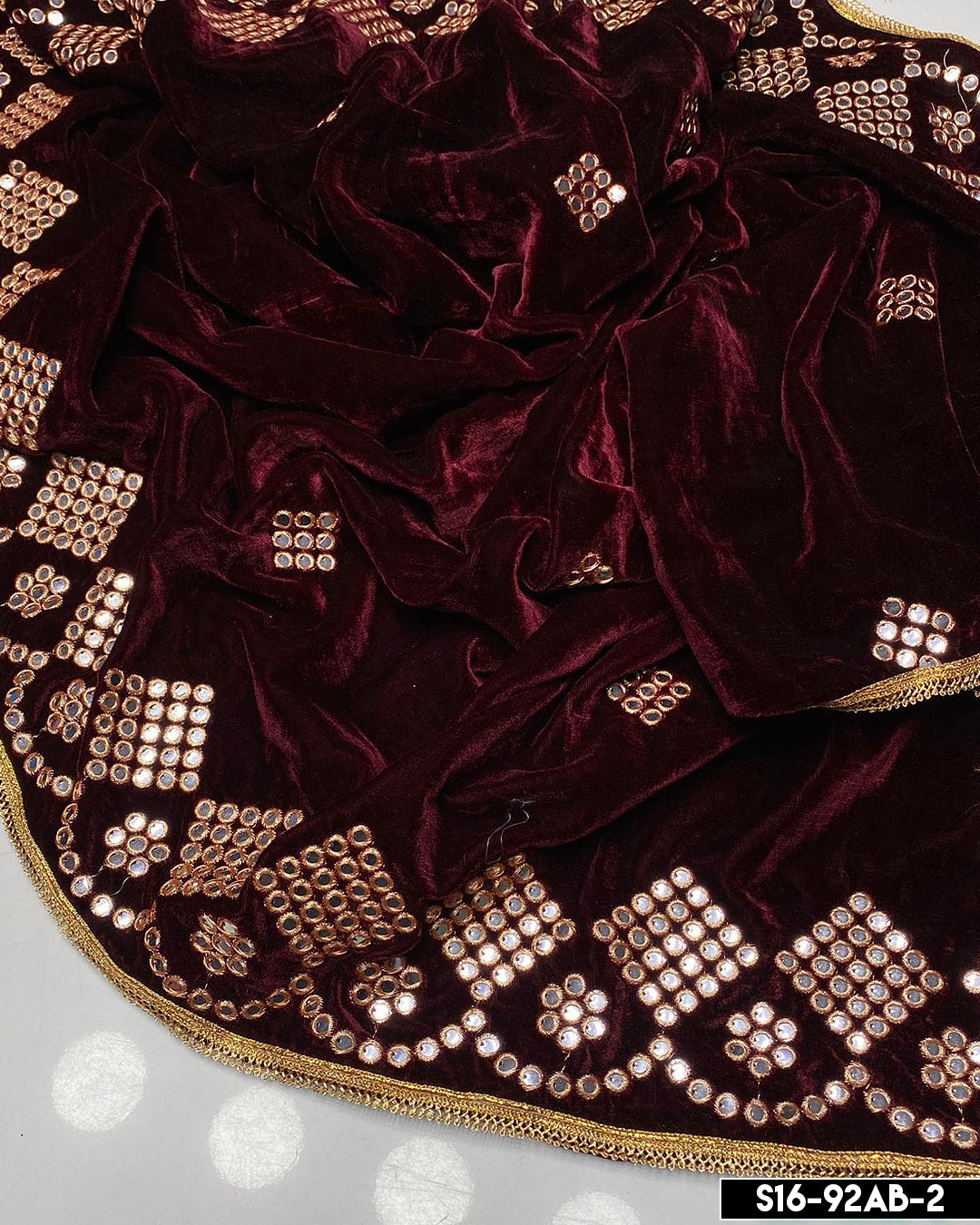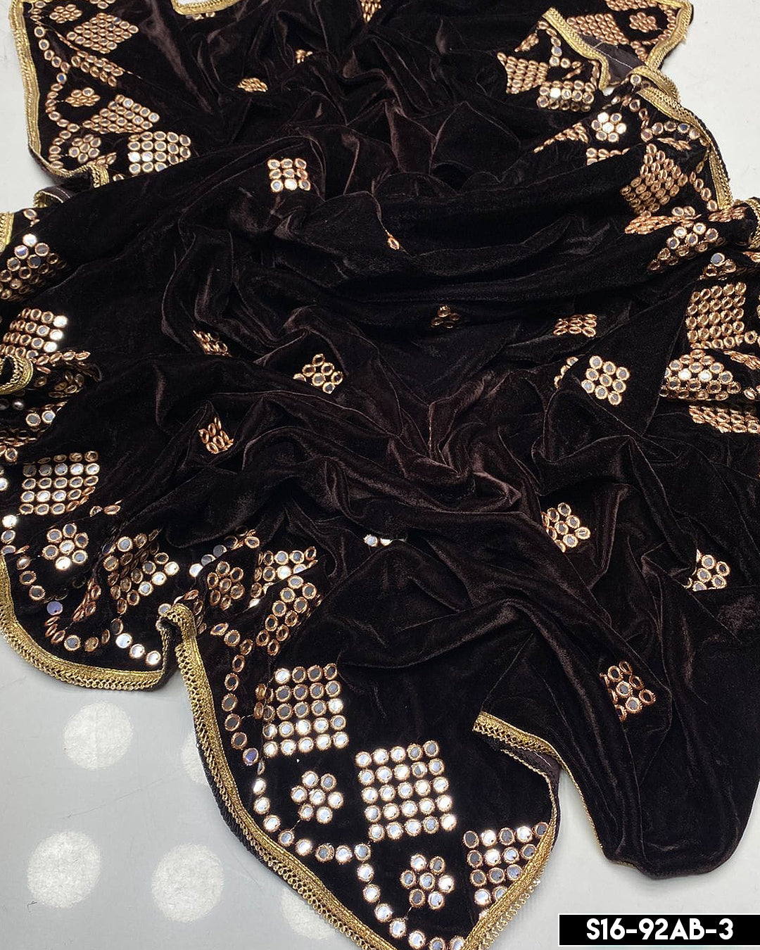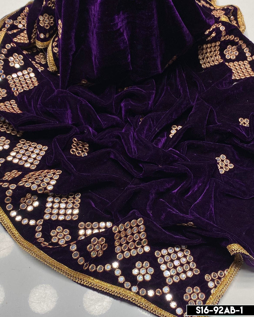 Velvet Embroidered 9mm Artificial Mirror Work Shawls