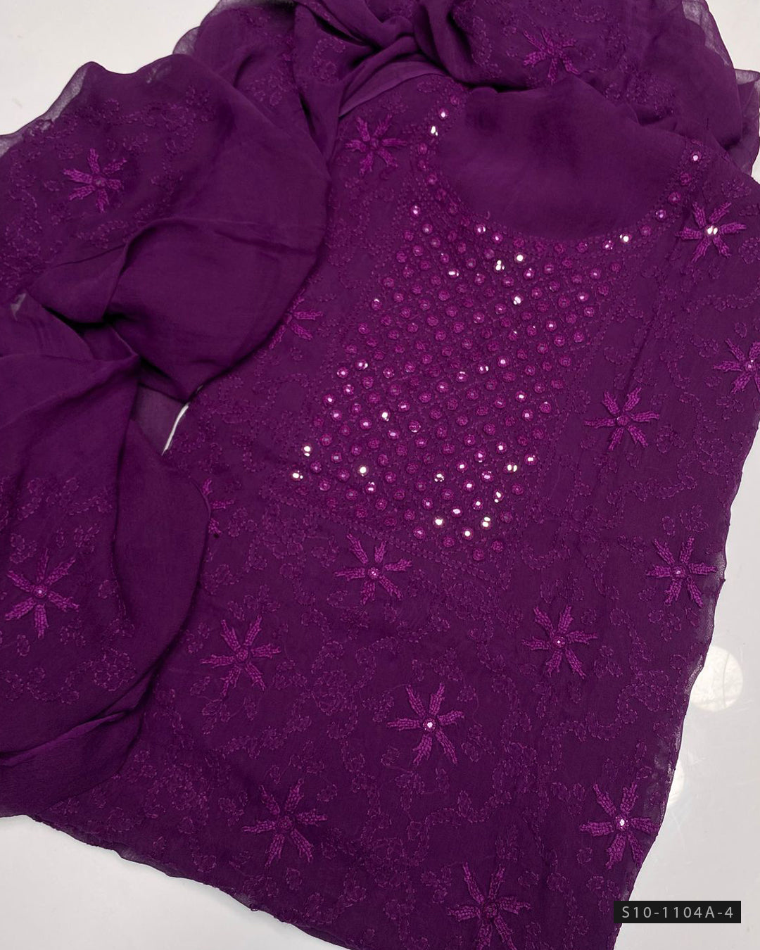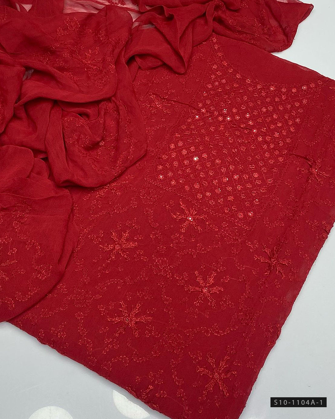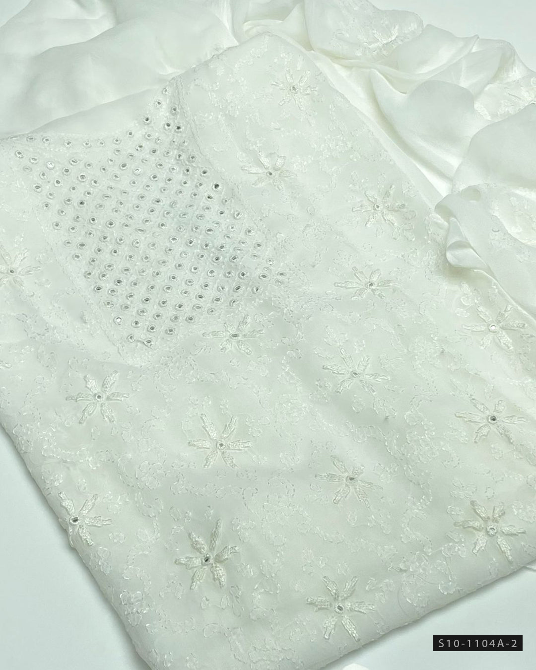 Shadow Sheesha Embroidery on Chiffon ShirtEmbroidered SleevesShadow Sheesha Work Chiffon Dupatta