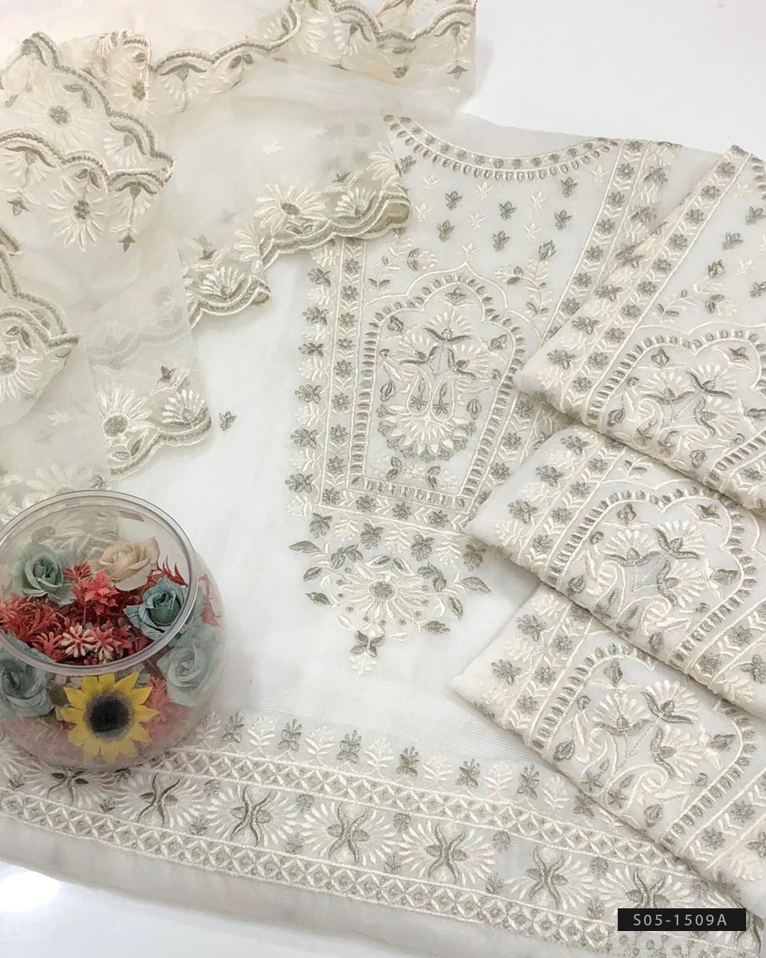Machine Embroidered Khaddi Net Shirt + Khaddi Net Embroidered Dupatta