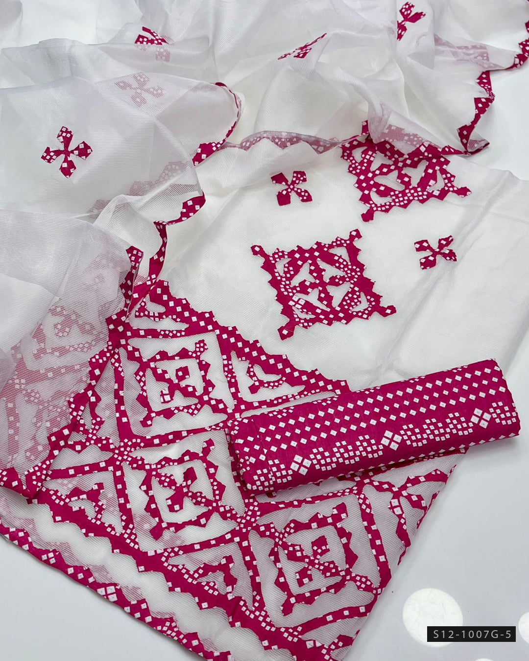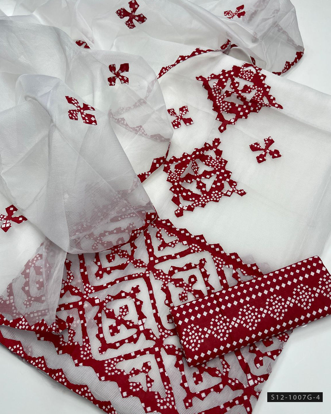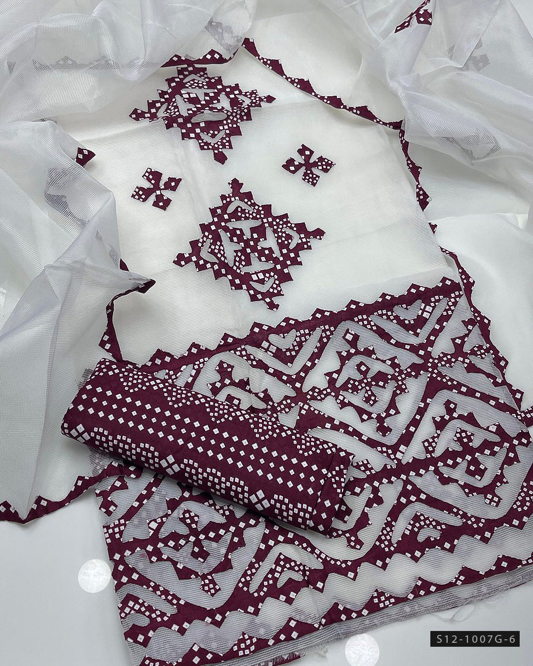 Fabric Detail:- Shirt & Dupatta: Khadi net with stylish applique workTrouser: Chunri print lawn, soft and trendy Traditional touch with a modern look – perfect for...