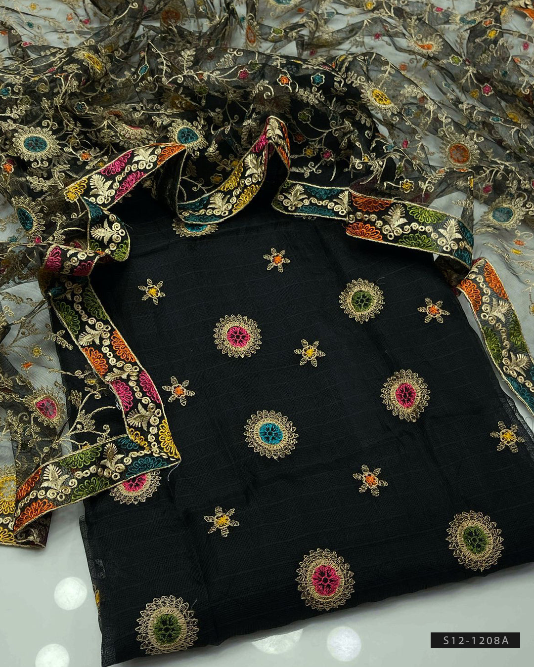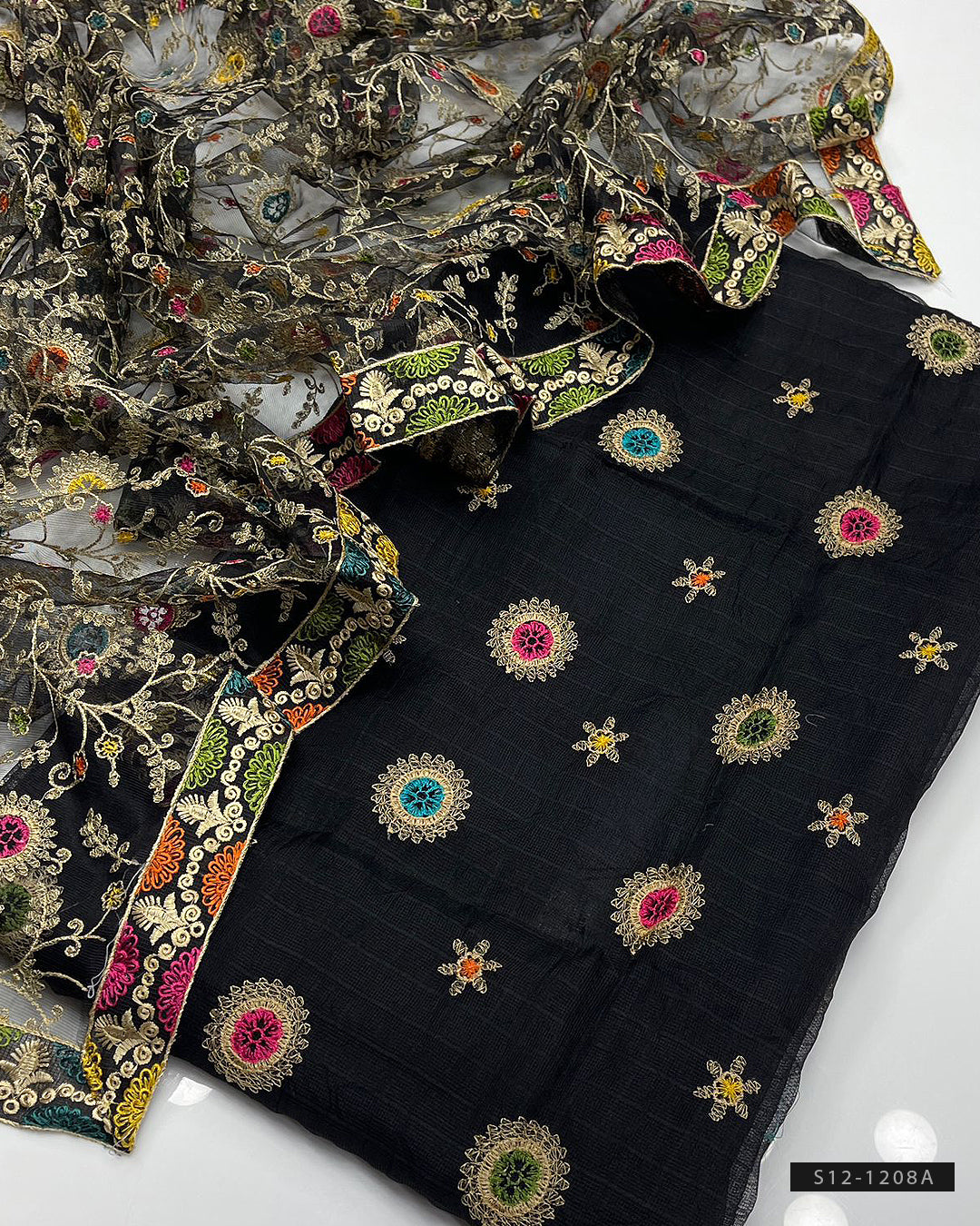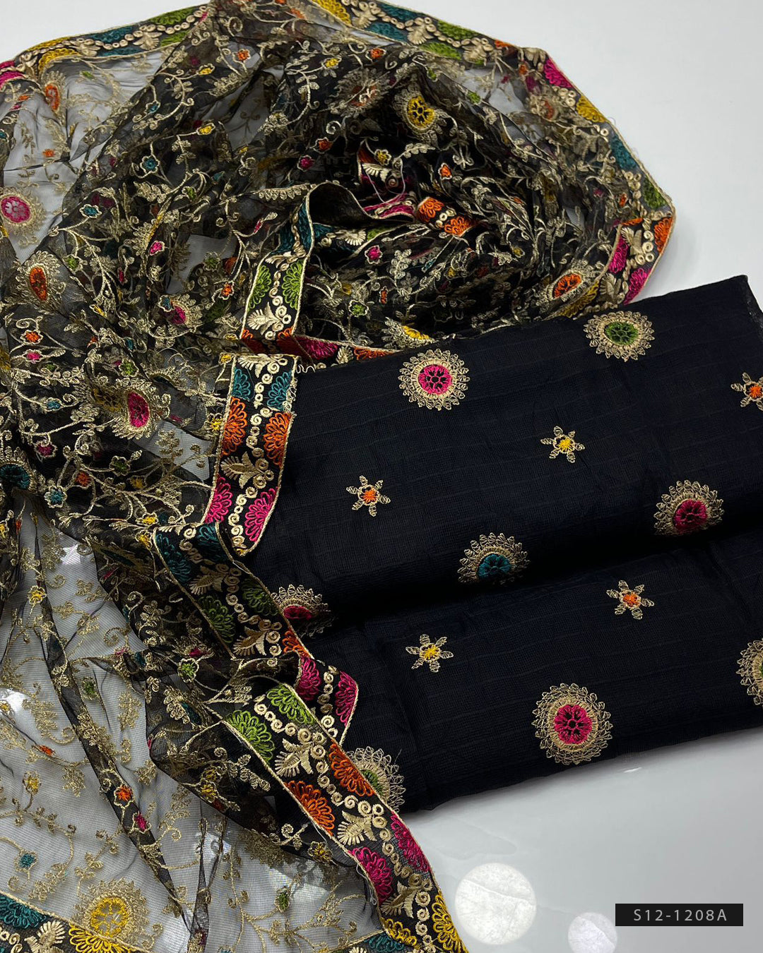 Fabric Detail:- Multi Embroidered Khadi Net ShirtPhulkari Style Embroidered Dupatta