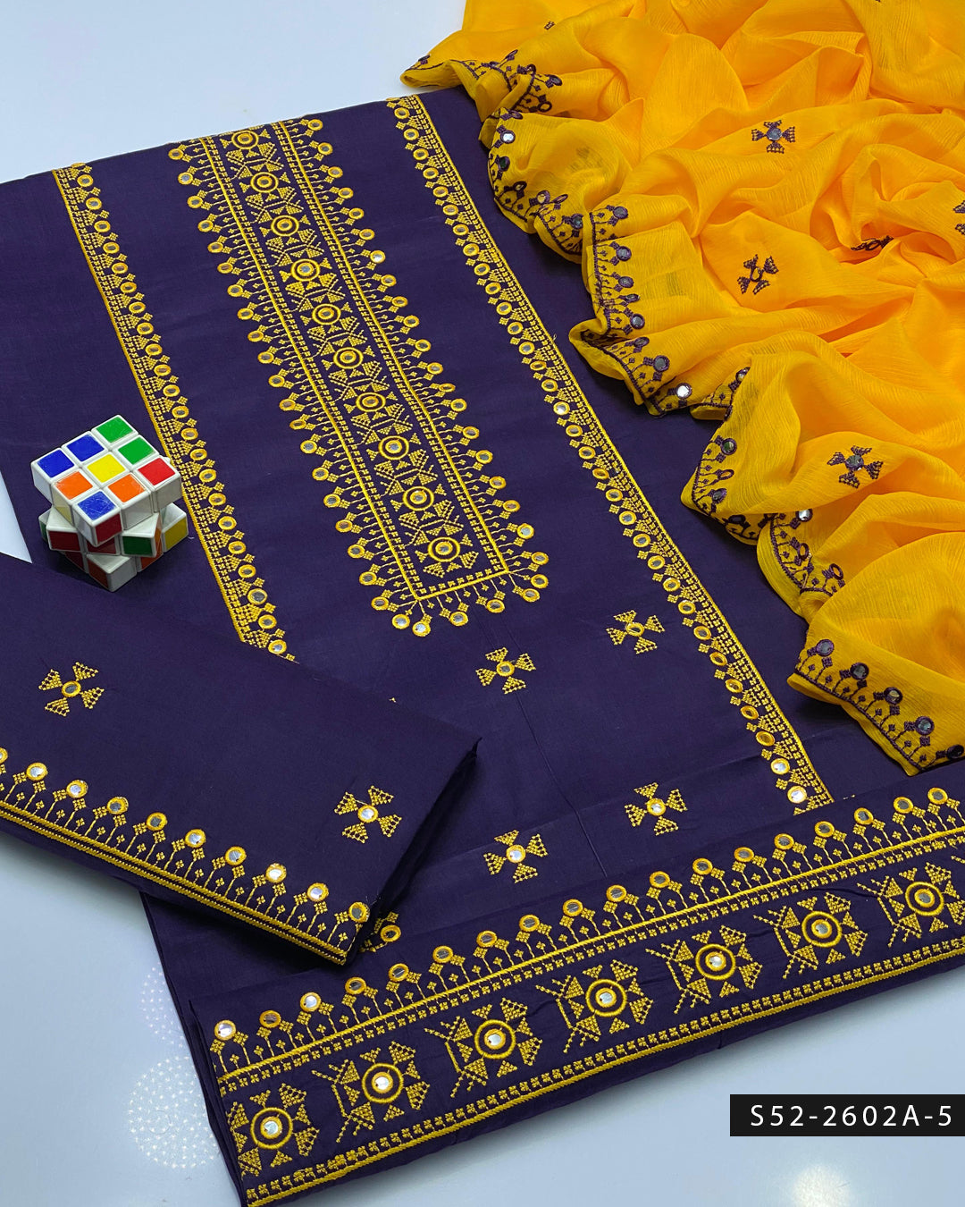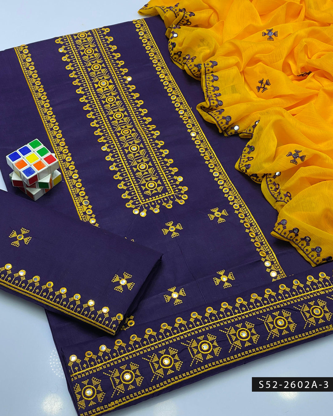 3PC Lawn Cotton 9MM Mirror Embroidered Dress – Cross Stitch Collection