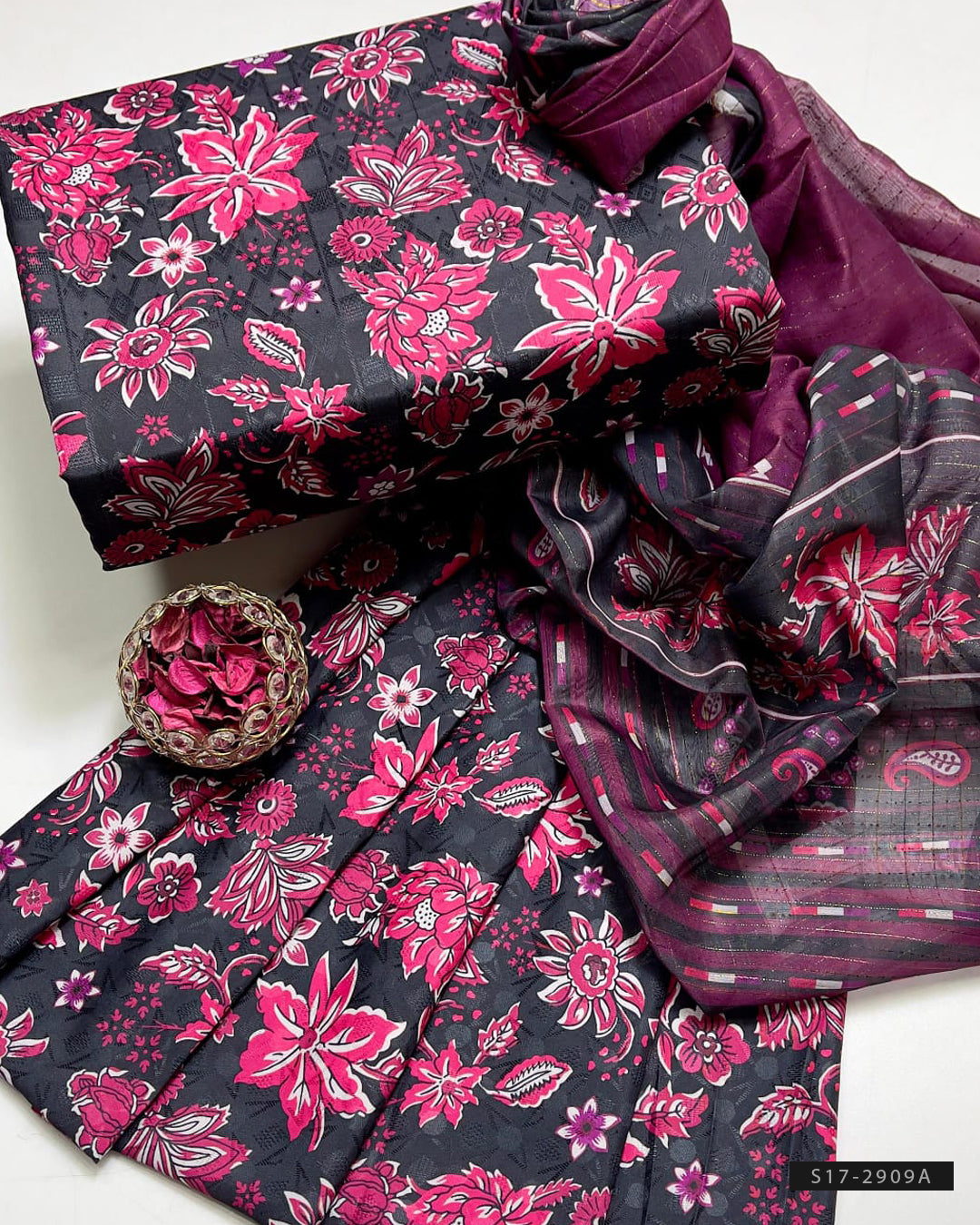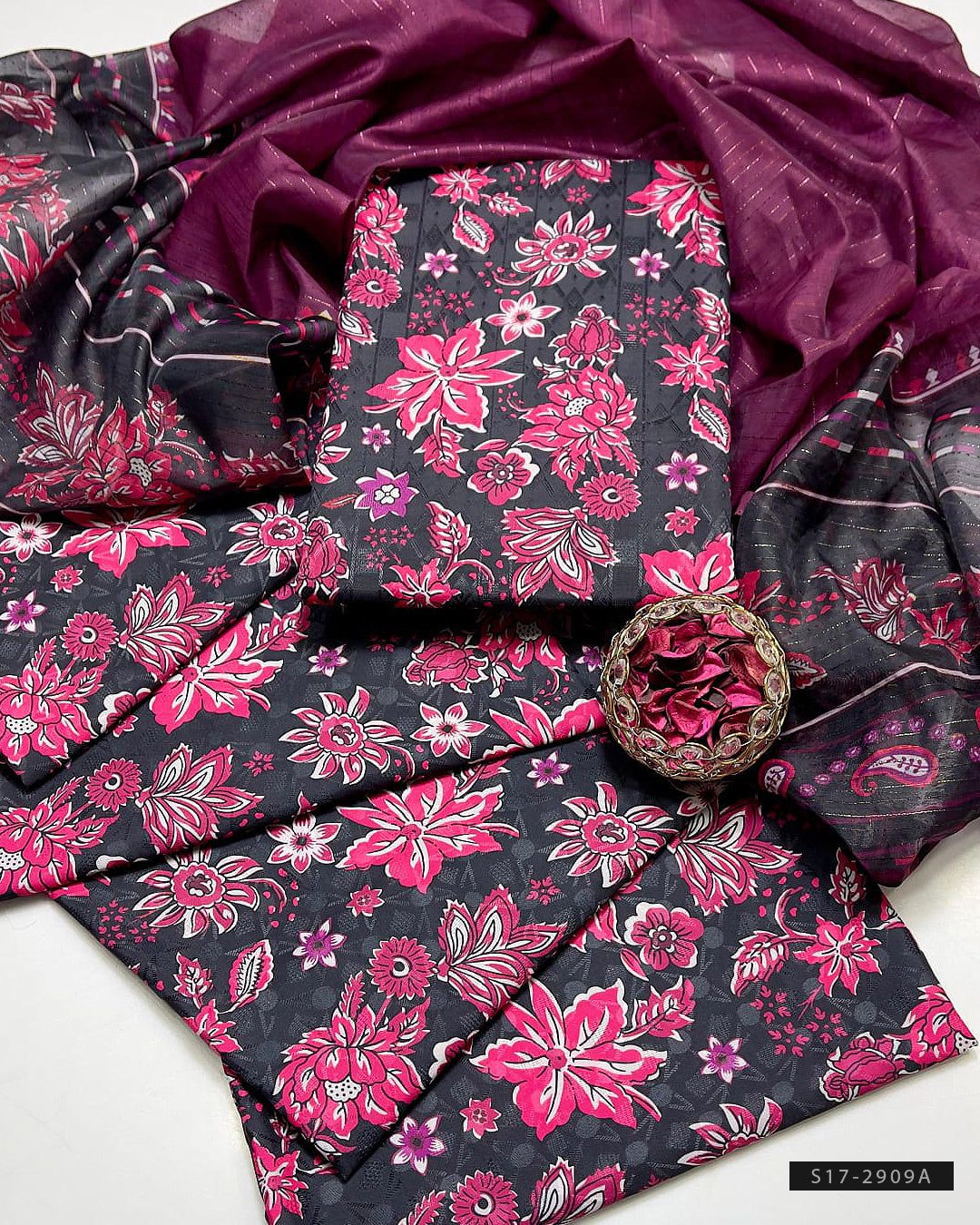 Fabric Detail:-Premium Swiss Jacquard Linen Shirt & Shalwar + Digital Printed All-Over Design + Monar Fabric Digital Print Dupatta