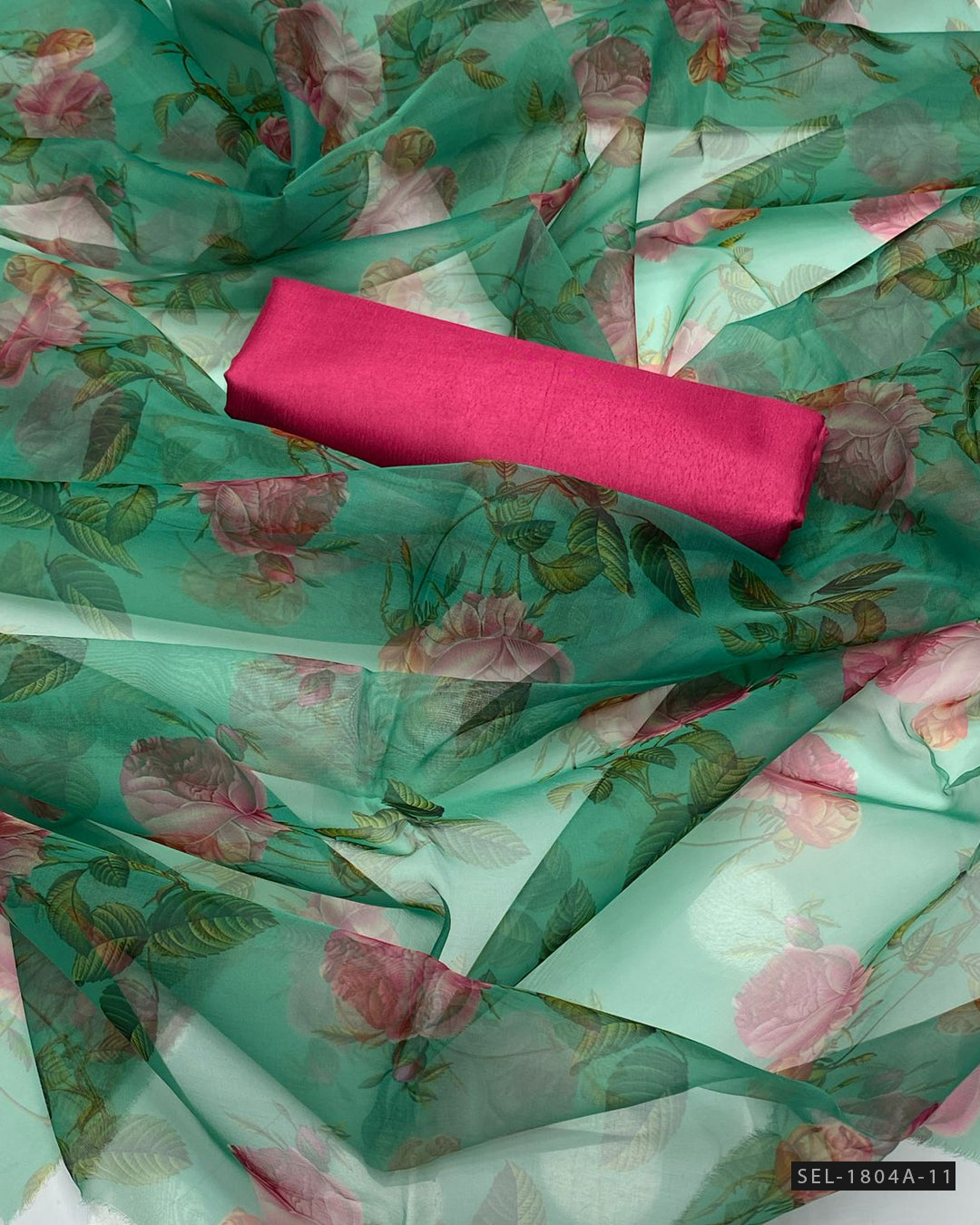 Fabric Detail:- Plain Katan Silk Shirt – without neckline + Plain Katan Silk Trouser + Printed Organza Dupatta – Light aur khubsurat print + Aik simple aur khubsurat...