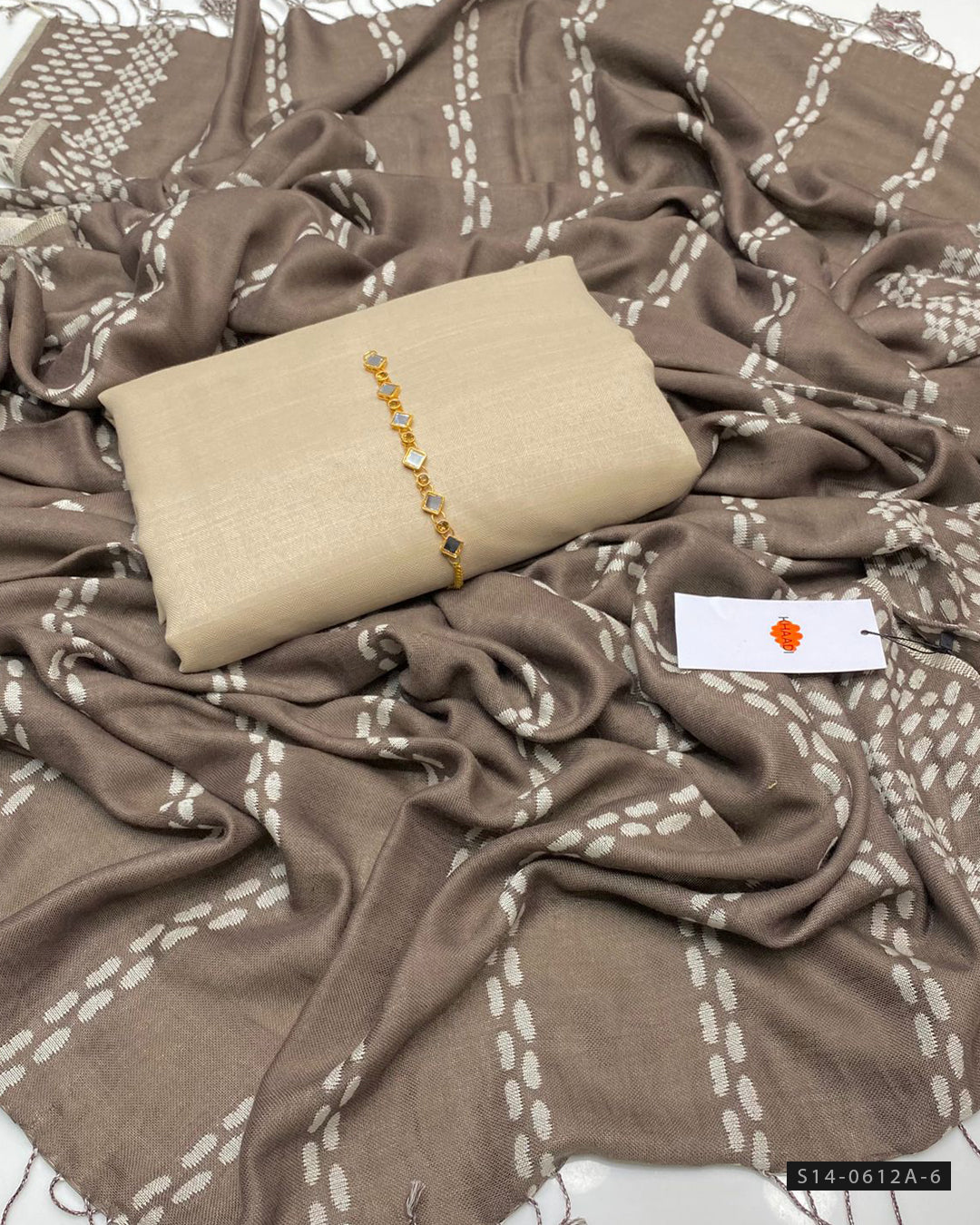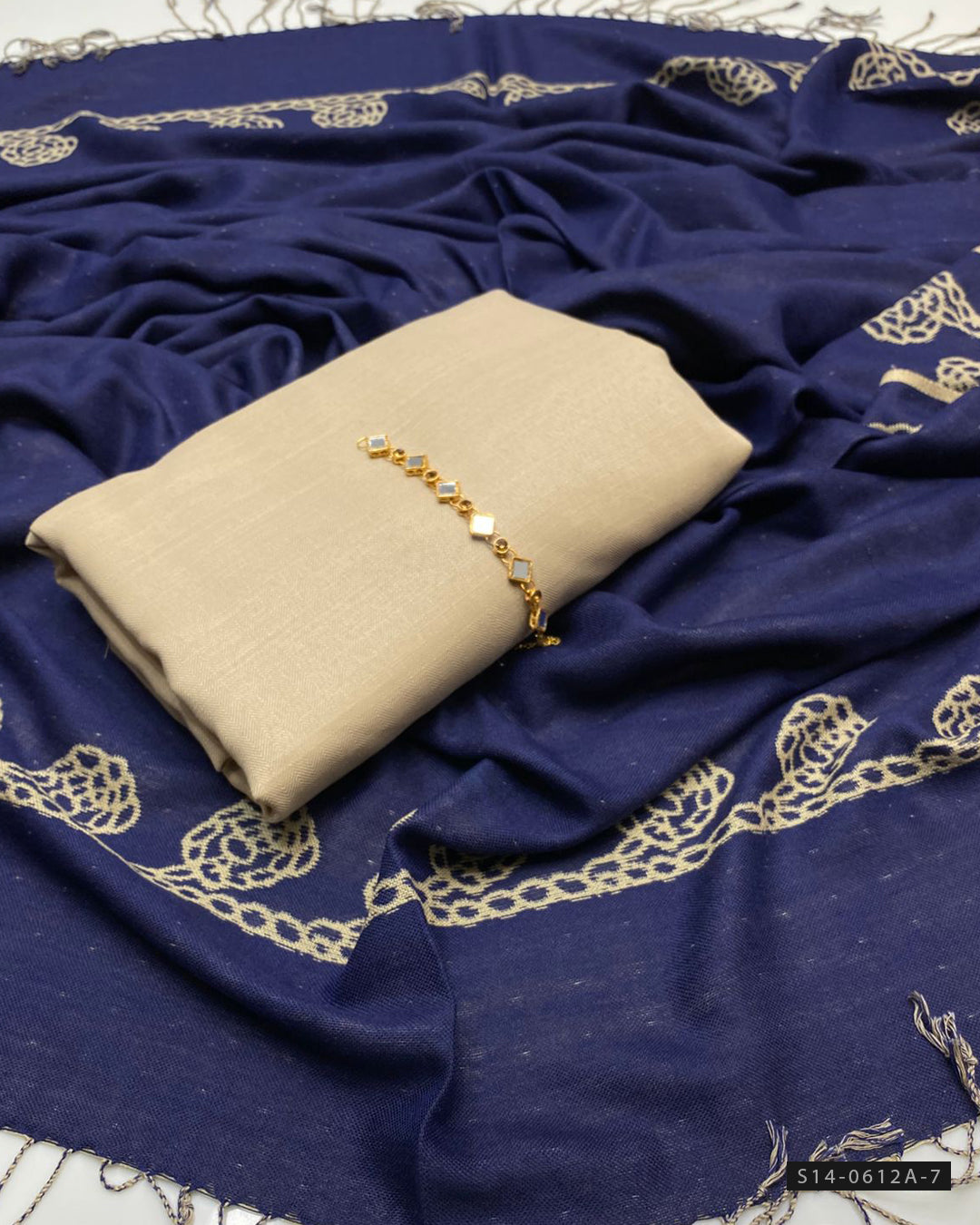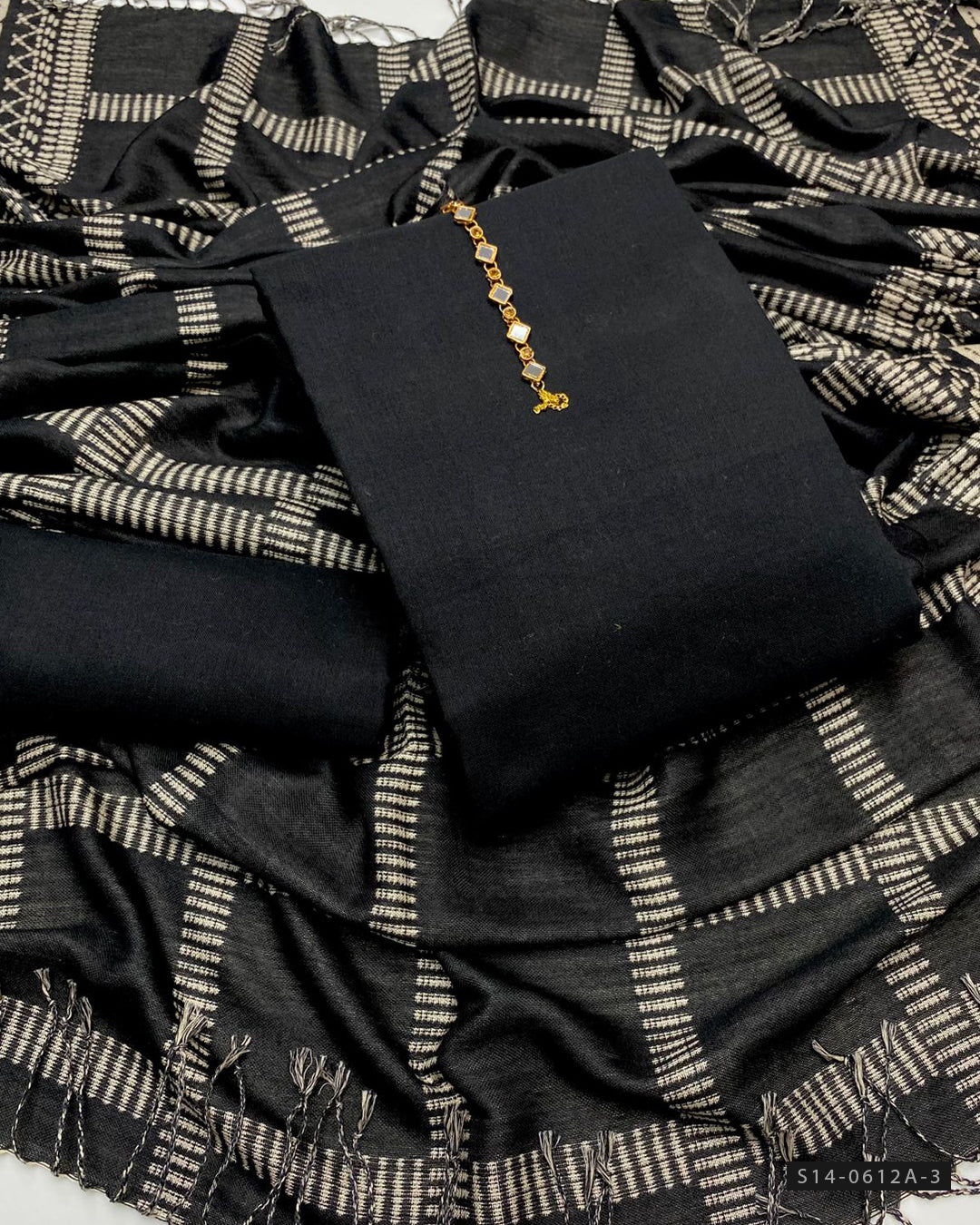 Fabric Details:-Plain Wool Shirt (Without Neckline) + Plain Wool Trouser + Brand Pure Wool Jacquard Shawl