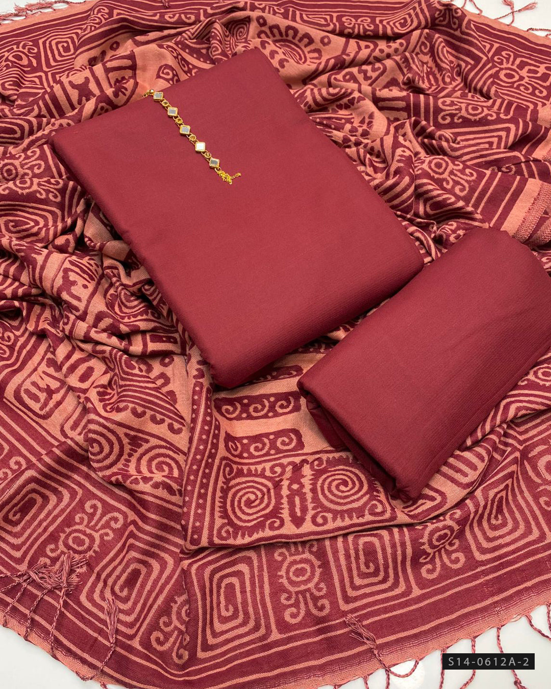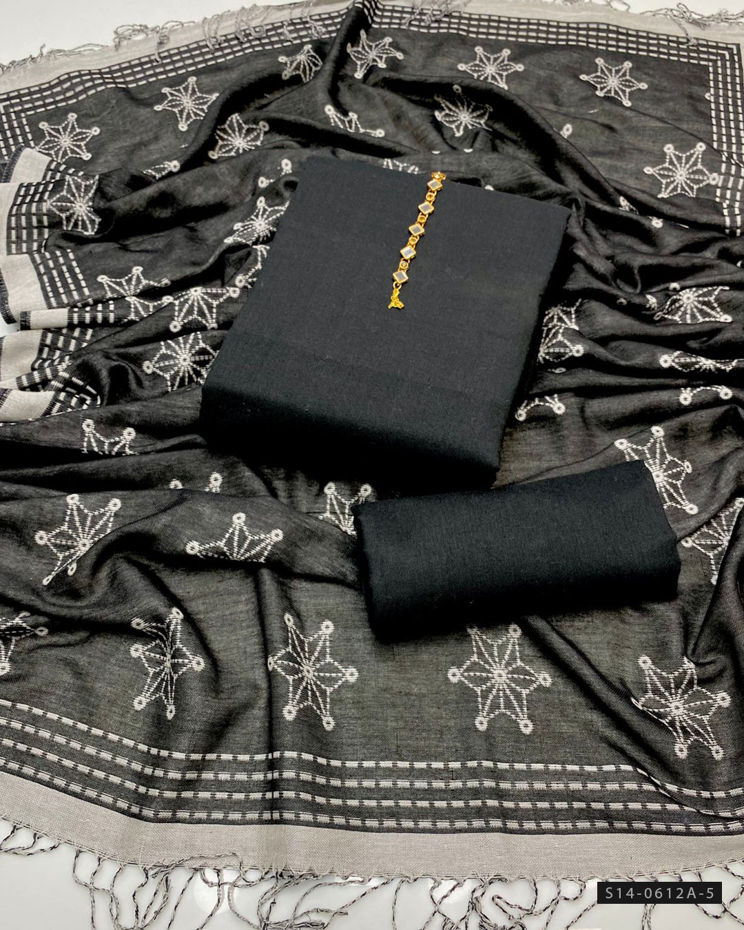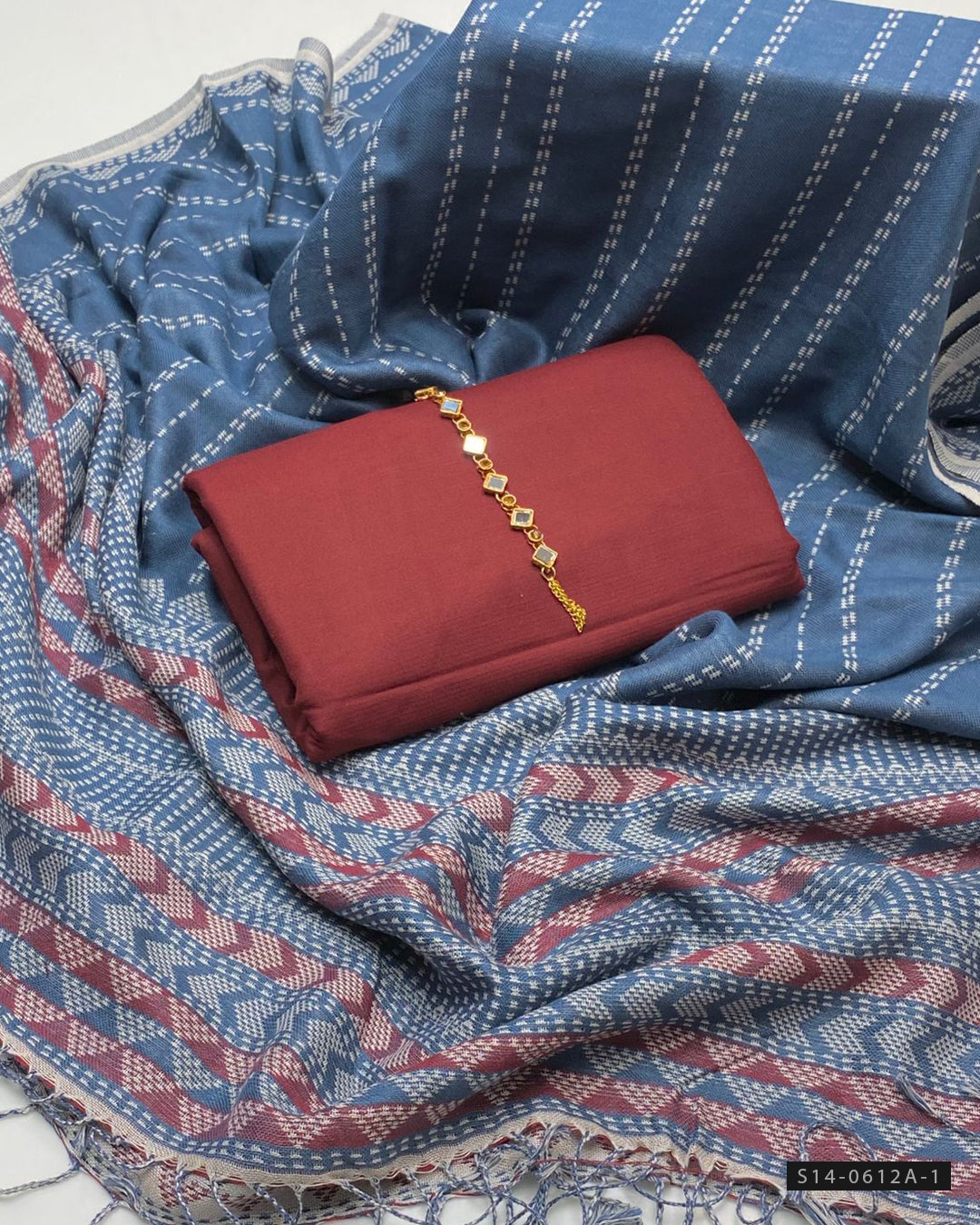 Fabric Details:-Plain Wool Shirt (Without Neckline) + Plain Wool Trouser + Brand Pure Wool Jacquard Shawl
