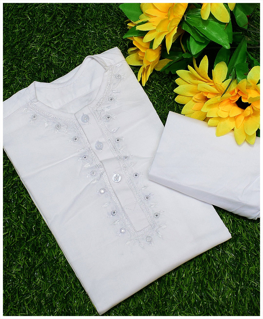 Gift the joy of tradition and style. Order your hand-embroidered kurta and shalwar set for kids today!
