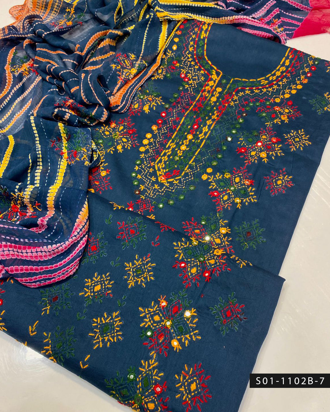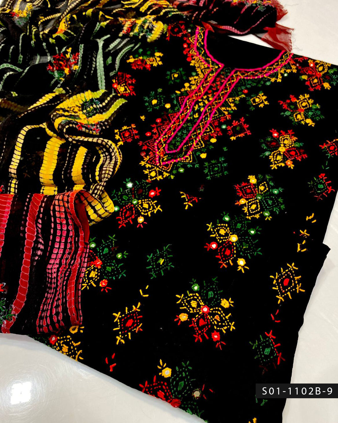 Handmade Afghani Sheesha Work 3PC Lawn Suit with Tie & Dye Chiffon Dupatta