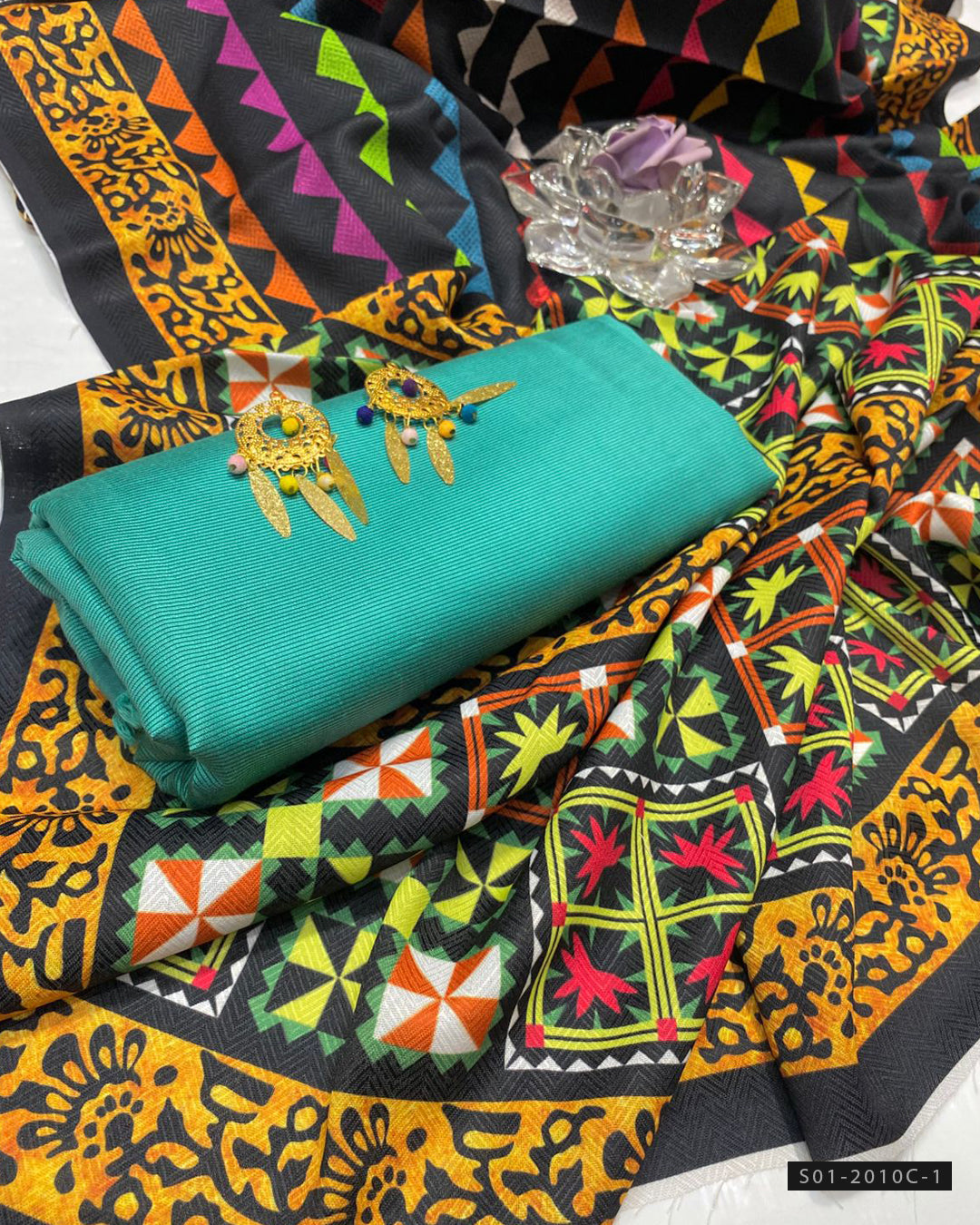 Fabric Detail:-Acrylic Printed Marina Shirt + Matching Marina Trouser + Dhanak Digital Printed Shawl