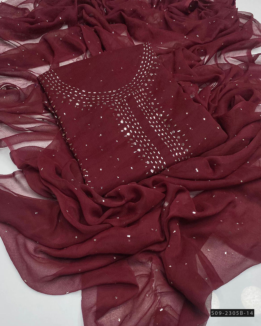 2 PC Unstitched Chiffon Mukesh Work Dress – Kurta Bail Design with Dupatta Spray