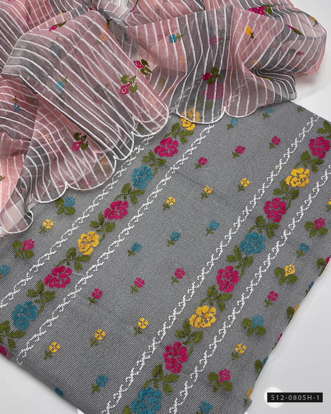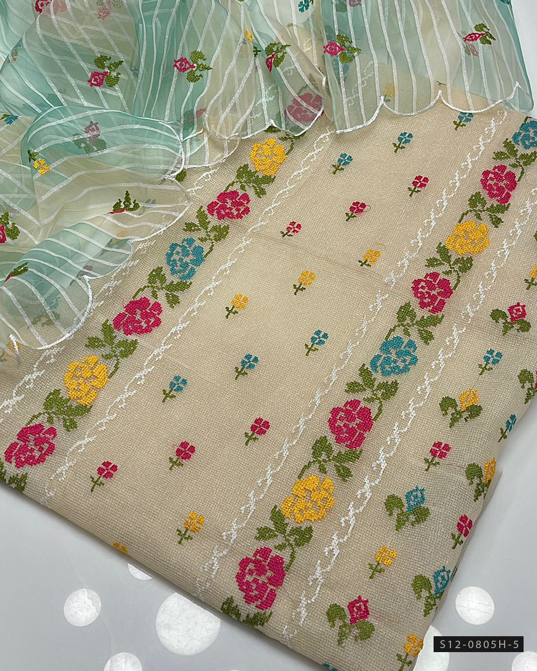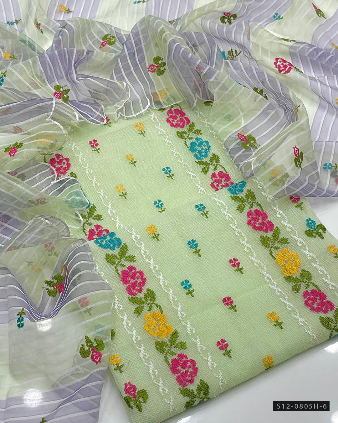 Double-tone organza dupatta adorned with intricate cross-stitch embroidery