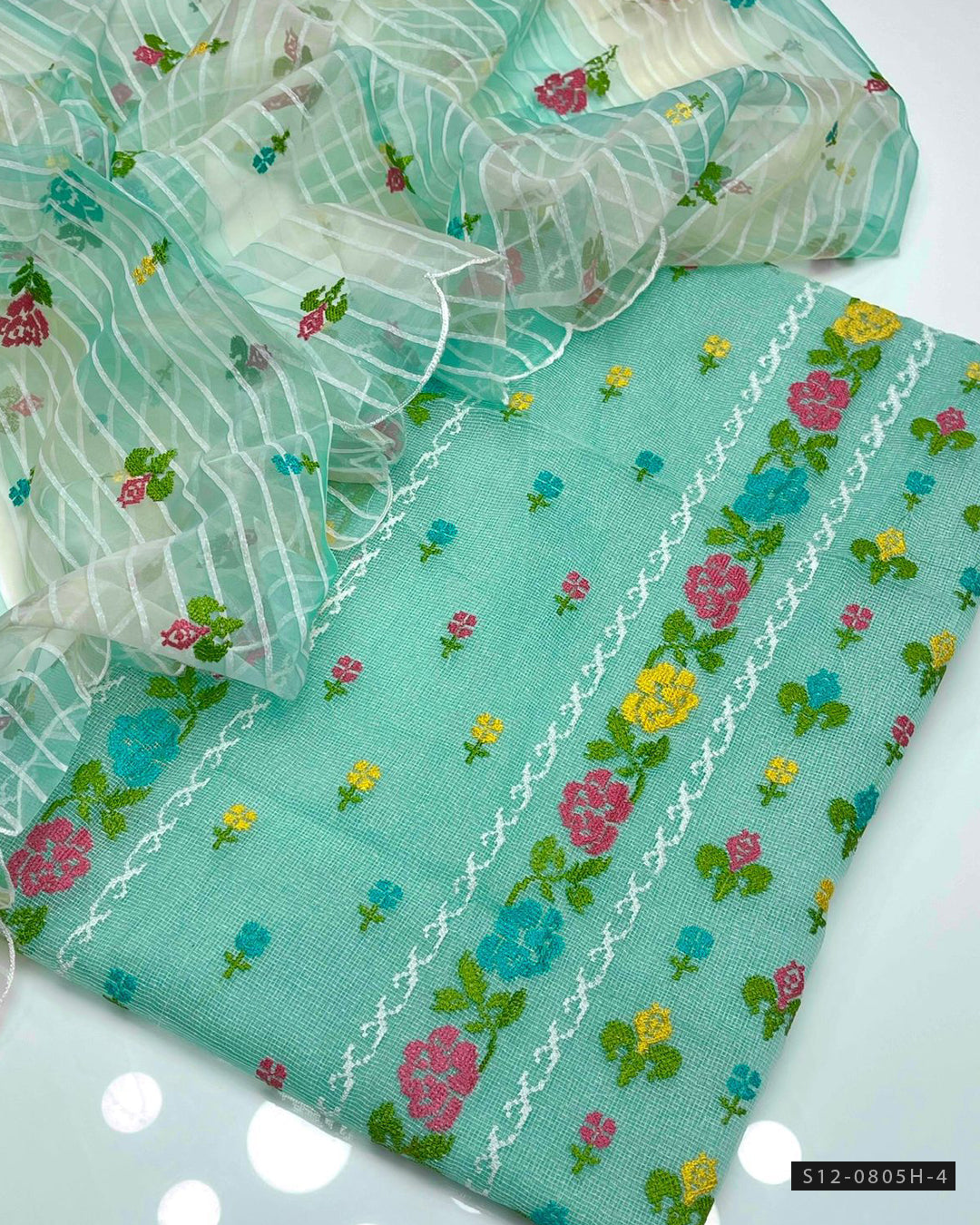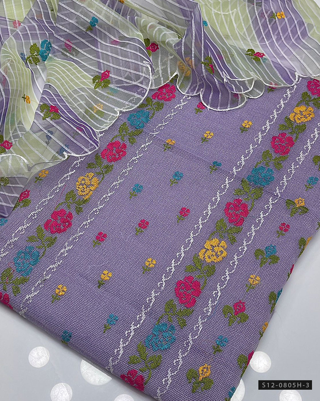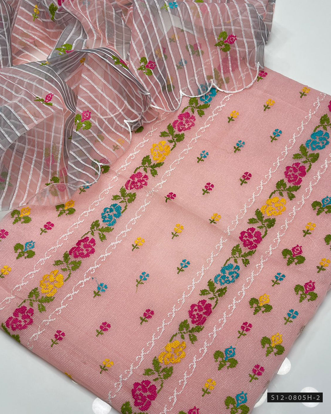 Double-tone organza dupatta adorned with intricate cross-stitch embroidery