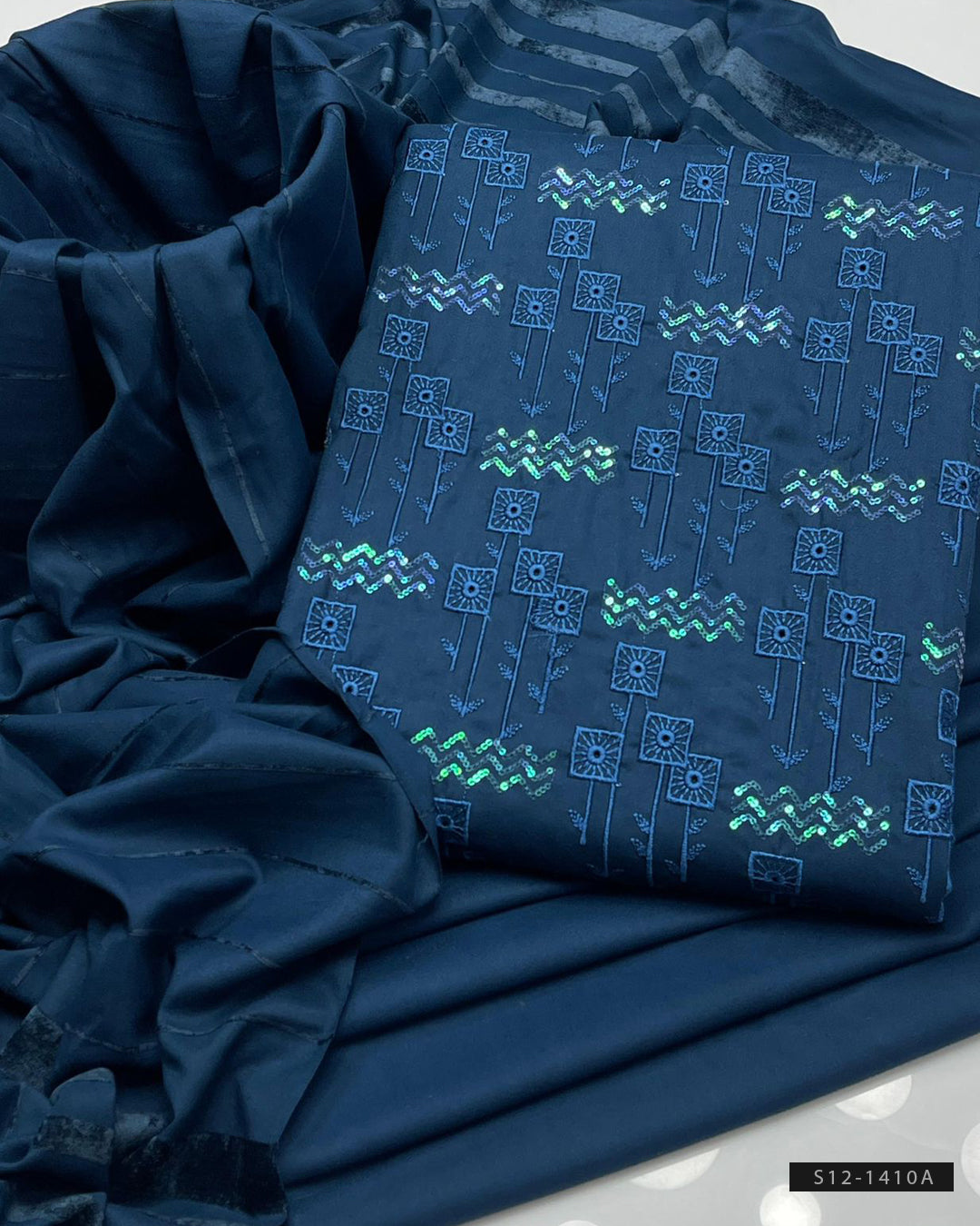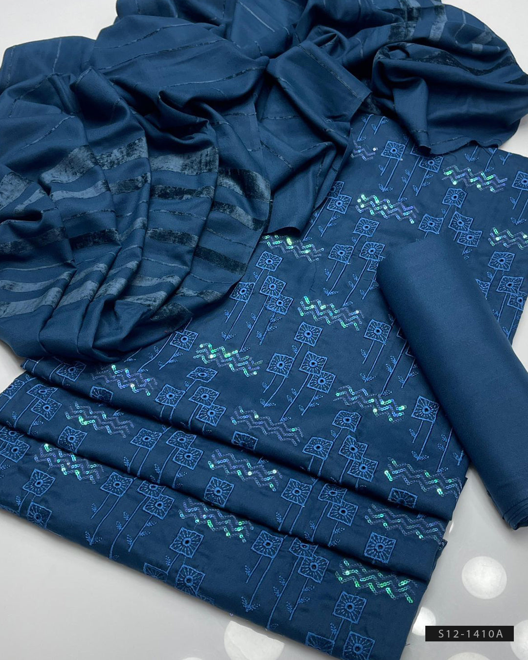 Fabric Detail:-Embroidered Boring Shirt with Sequence Work + Plain Trouser + Dhanak Shawl with Velvet Work detailing