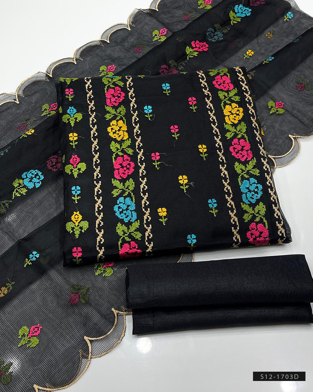 Khadi Net Embroidered ShirtCut Work Embroidered Khadi Net DupattaPlain Katan Silk Trouser