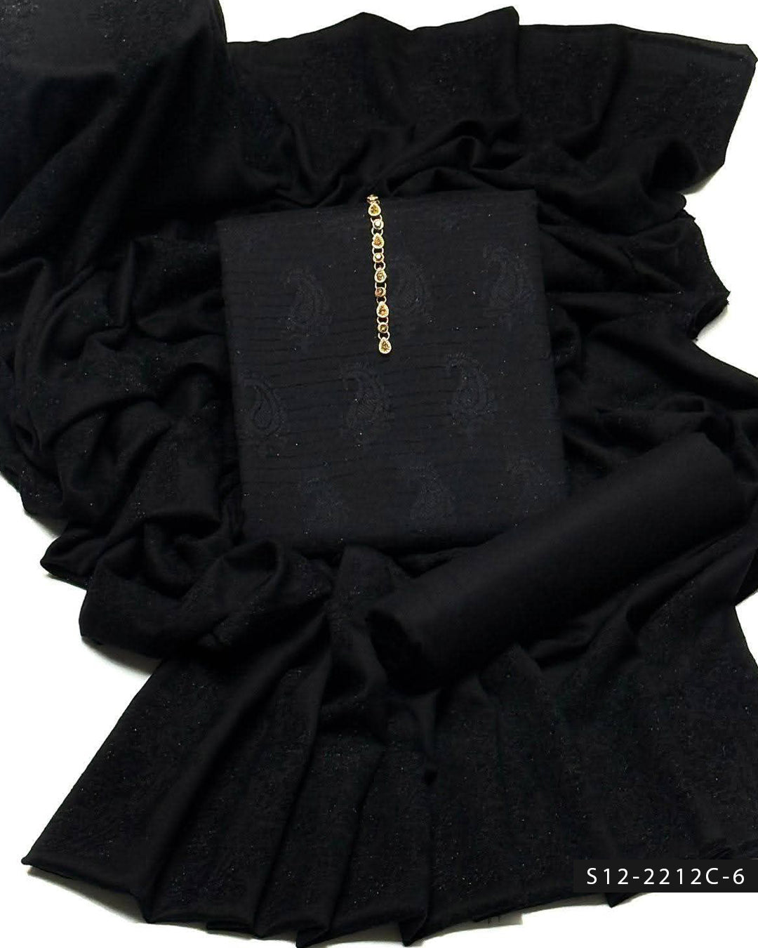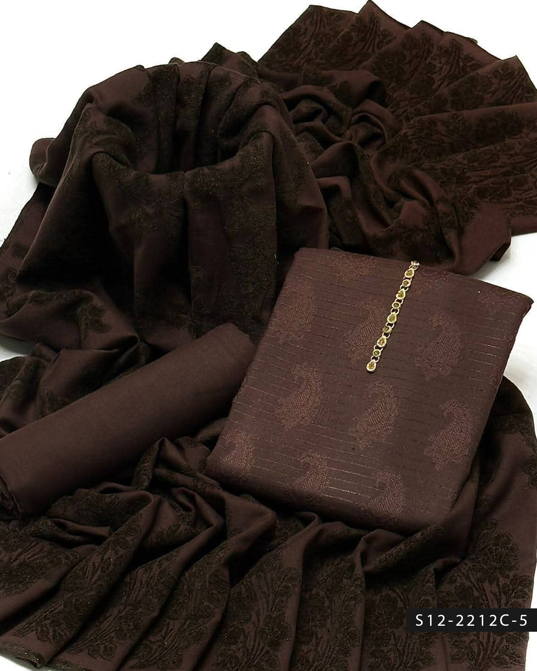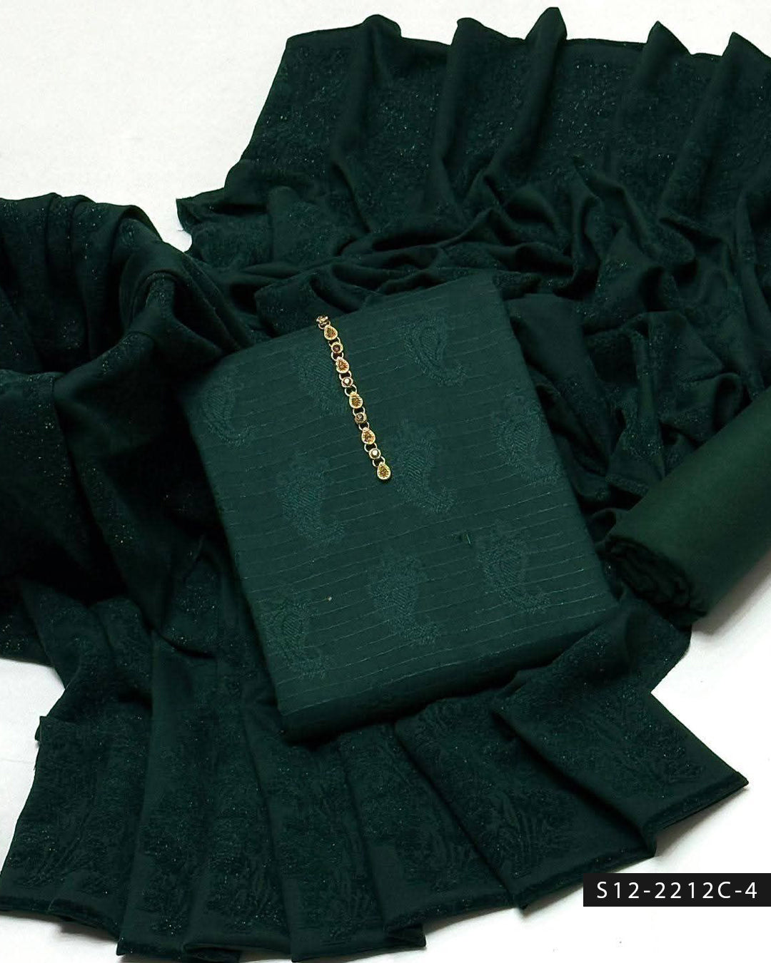 Fabric Details:-High-quality dhanak shirt with Banadora chamki self design (Without Neckline) + Pure Plachii style shawl with chamki base velvet broshia + Chamki dhanak trouser