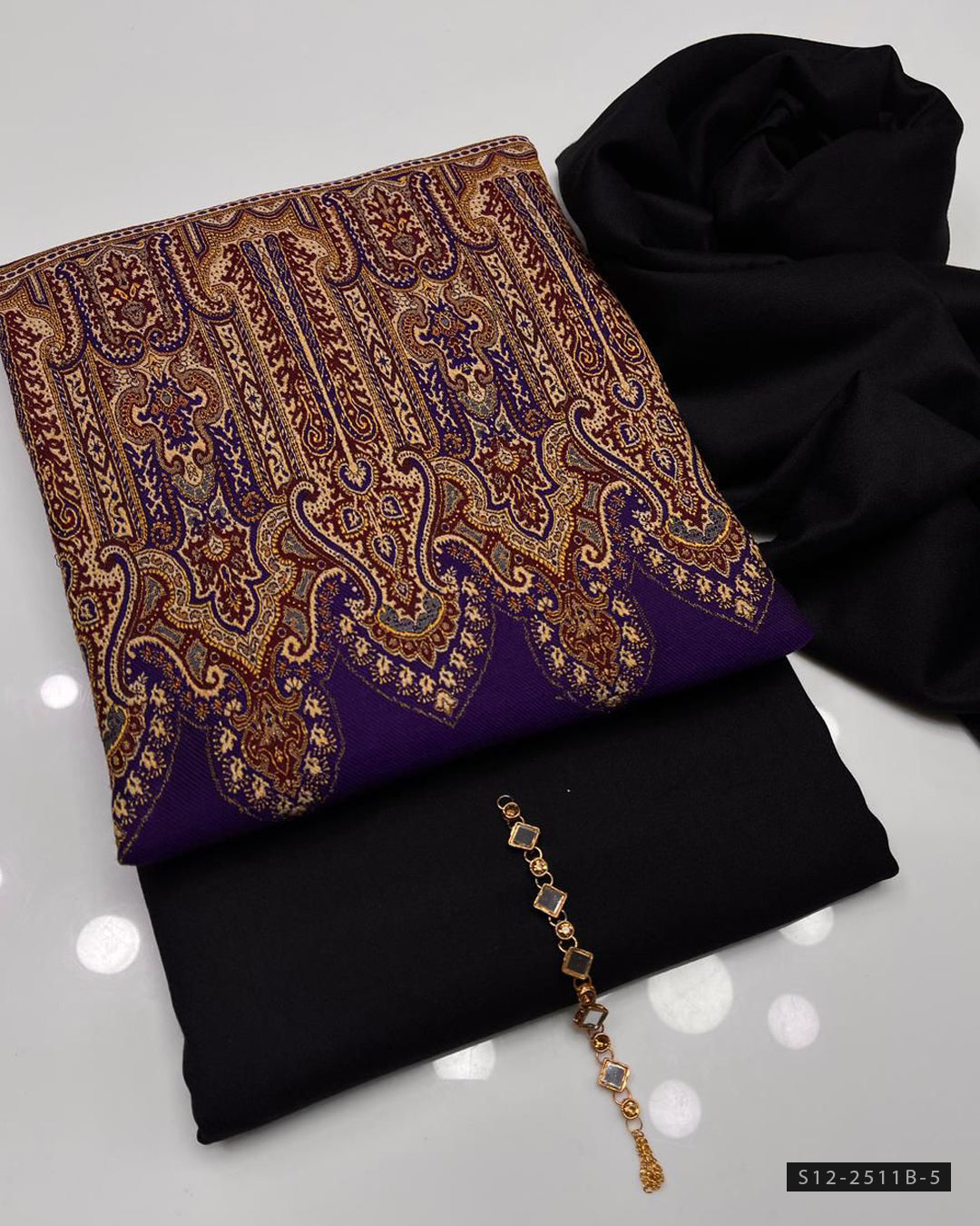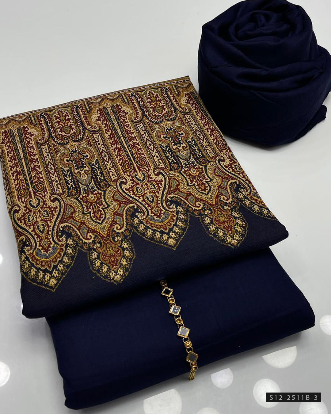 Fabric Detail:-Shirt & Trouser Plain Dhanak Marina (Without Neckline) + Pashmina Wool Jacquard Shawl