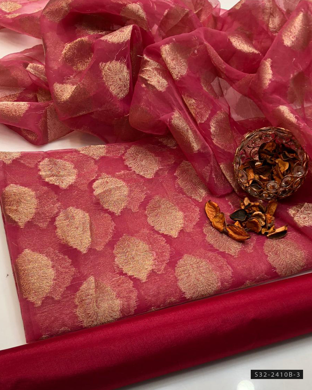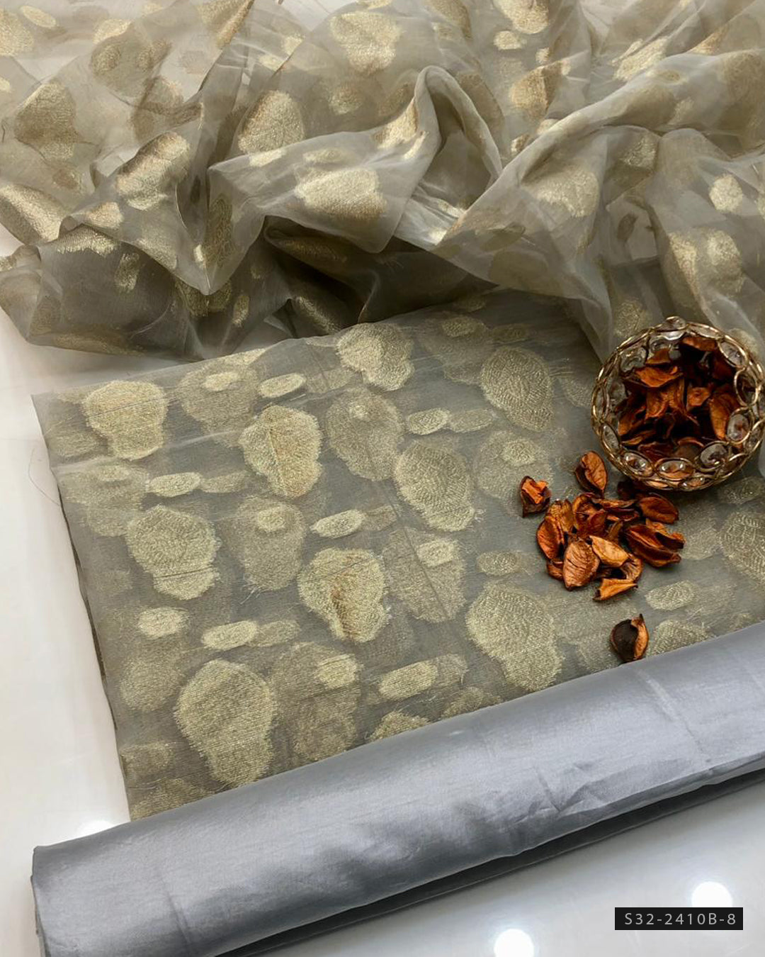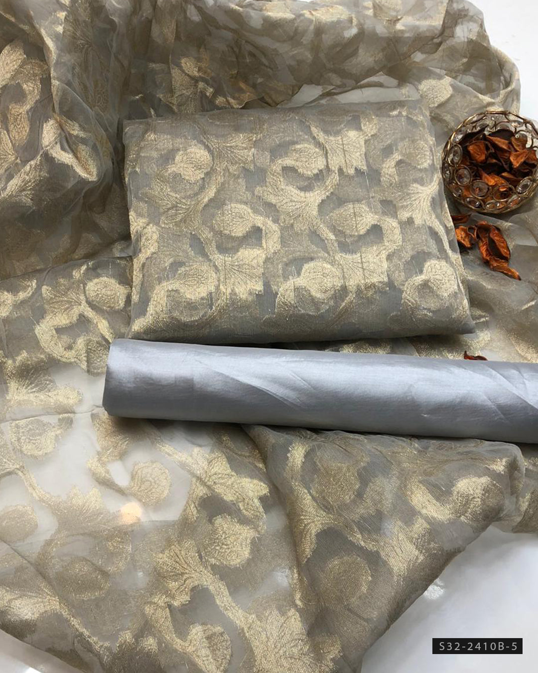 Fabric Detail:-Organza Zari Broshia Shirt + Organza Zari Broshia Dupatta + Plain Katan Silk Trouser