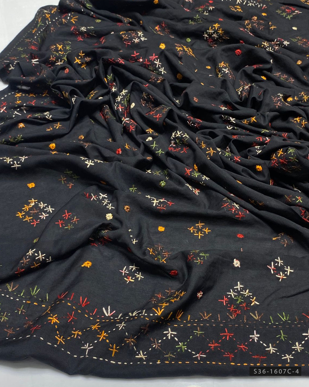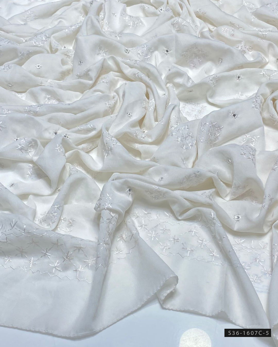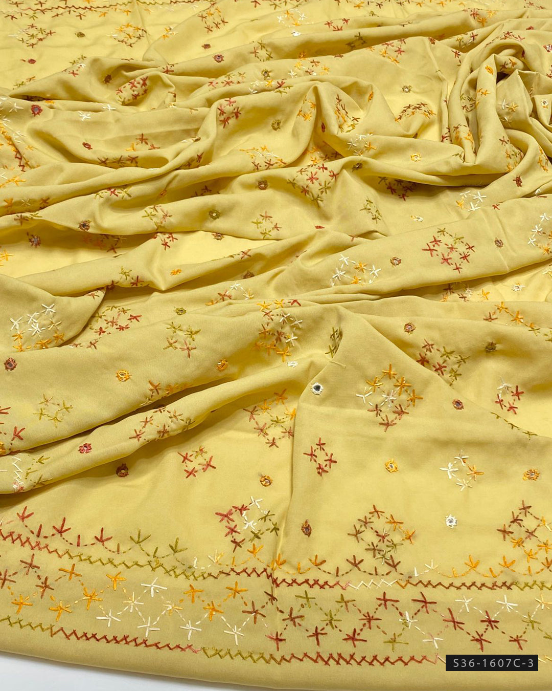 Fabric Detail:- Chawal Shisha Jaal Design with 4-Sided BorderOriginal Mirror Work – Finely HandcraftedLength: 2.5 Yards A timeless piece with intricate detailing – perfect for graceful,...