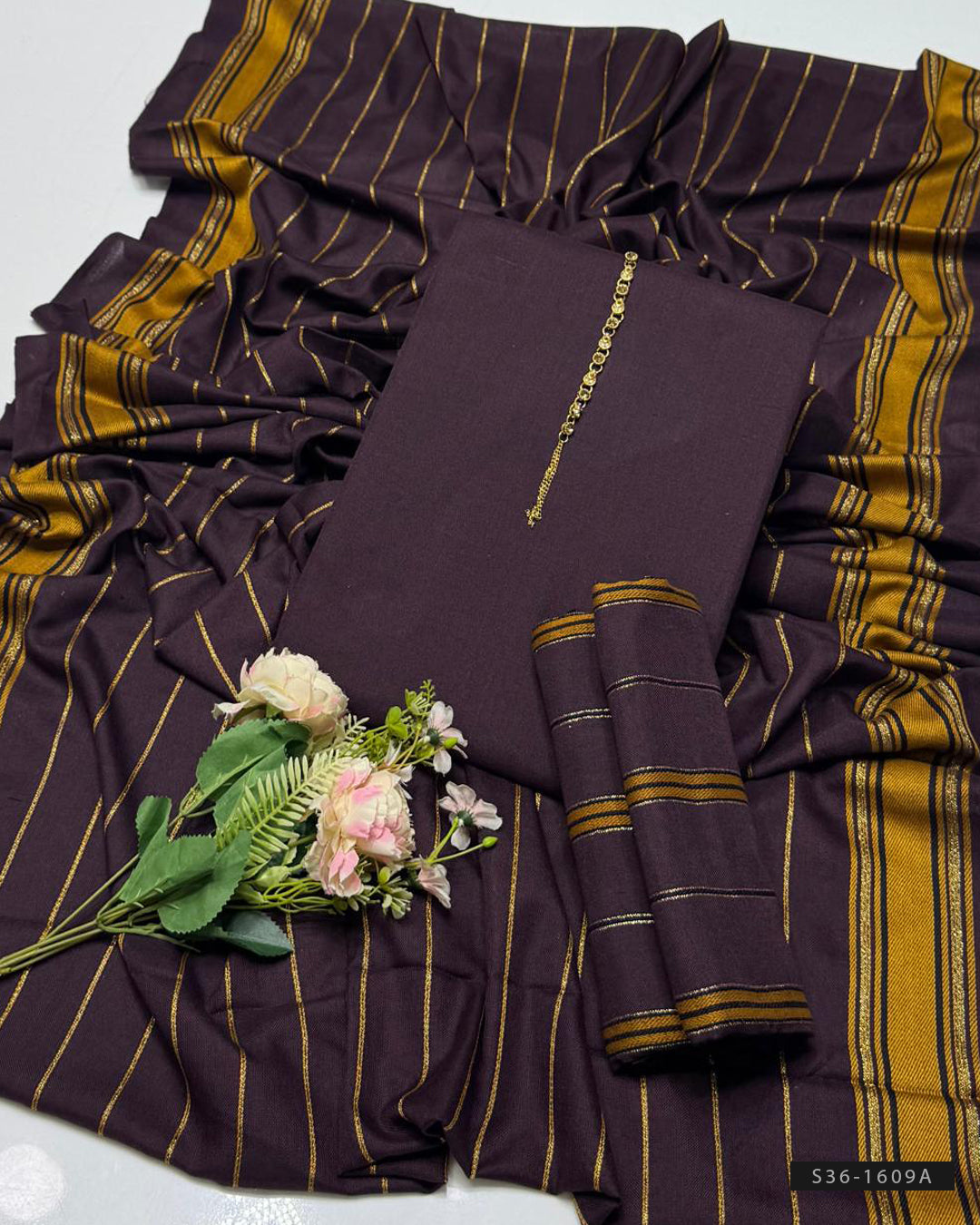 Fabric Detail:-Plain Marina Shirt + Striped Lining Marina Dupatta + Striped Lining Marina Trouser + Plain Sleeves