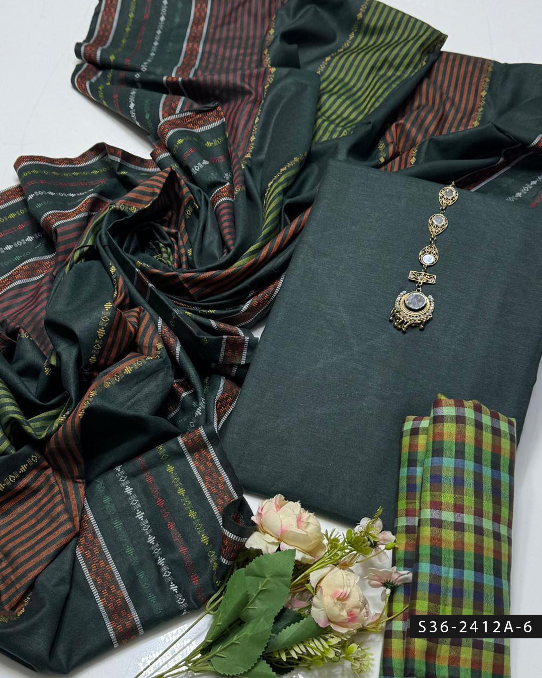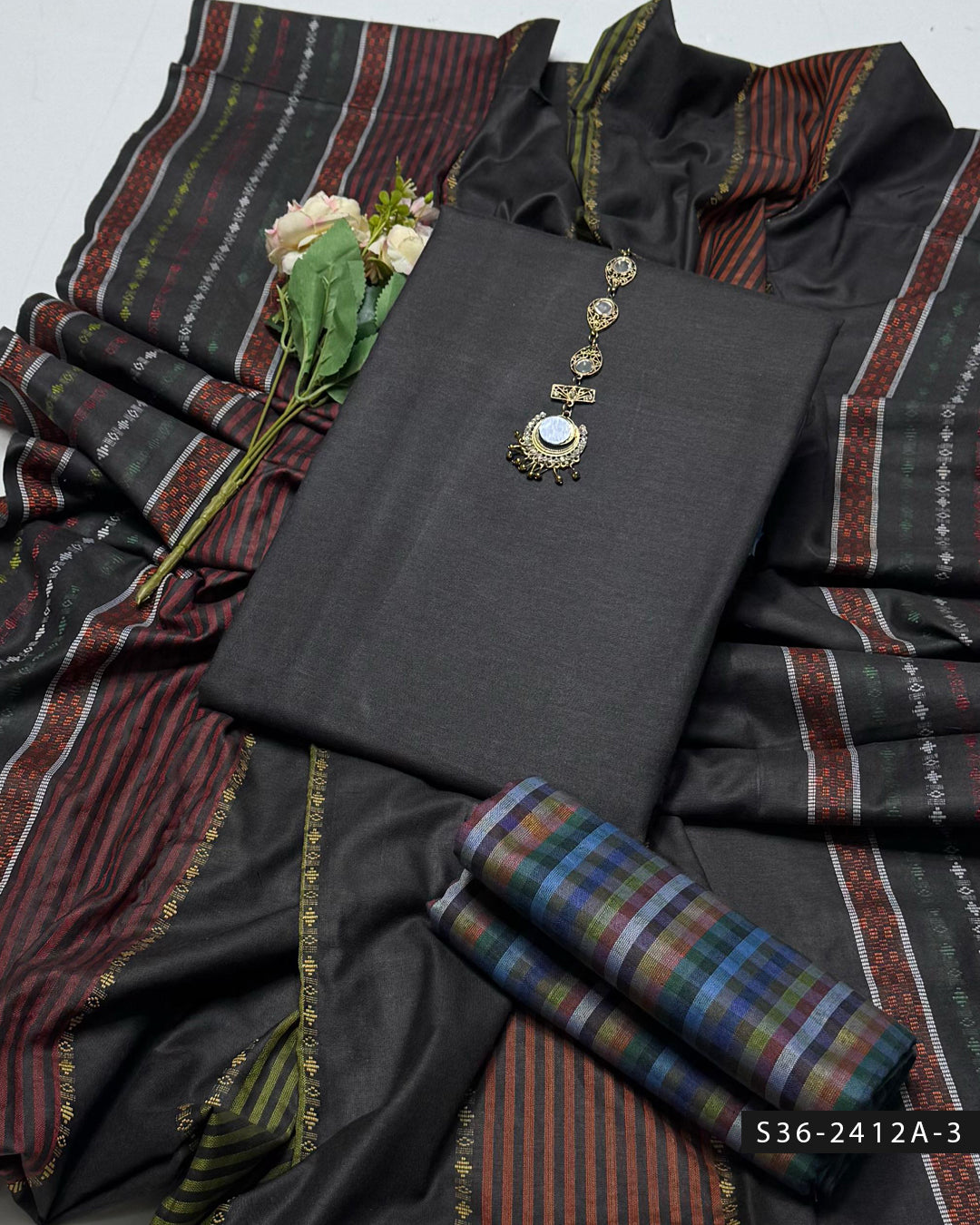 Fabric Detail:-Khadi plain shirt (Without Neckline & Buttons) + Stripes lining khadi trouser + Gall style khadi dupatta + Plain sleeves